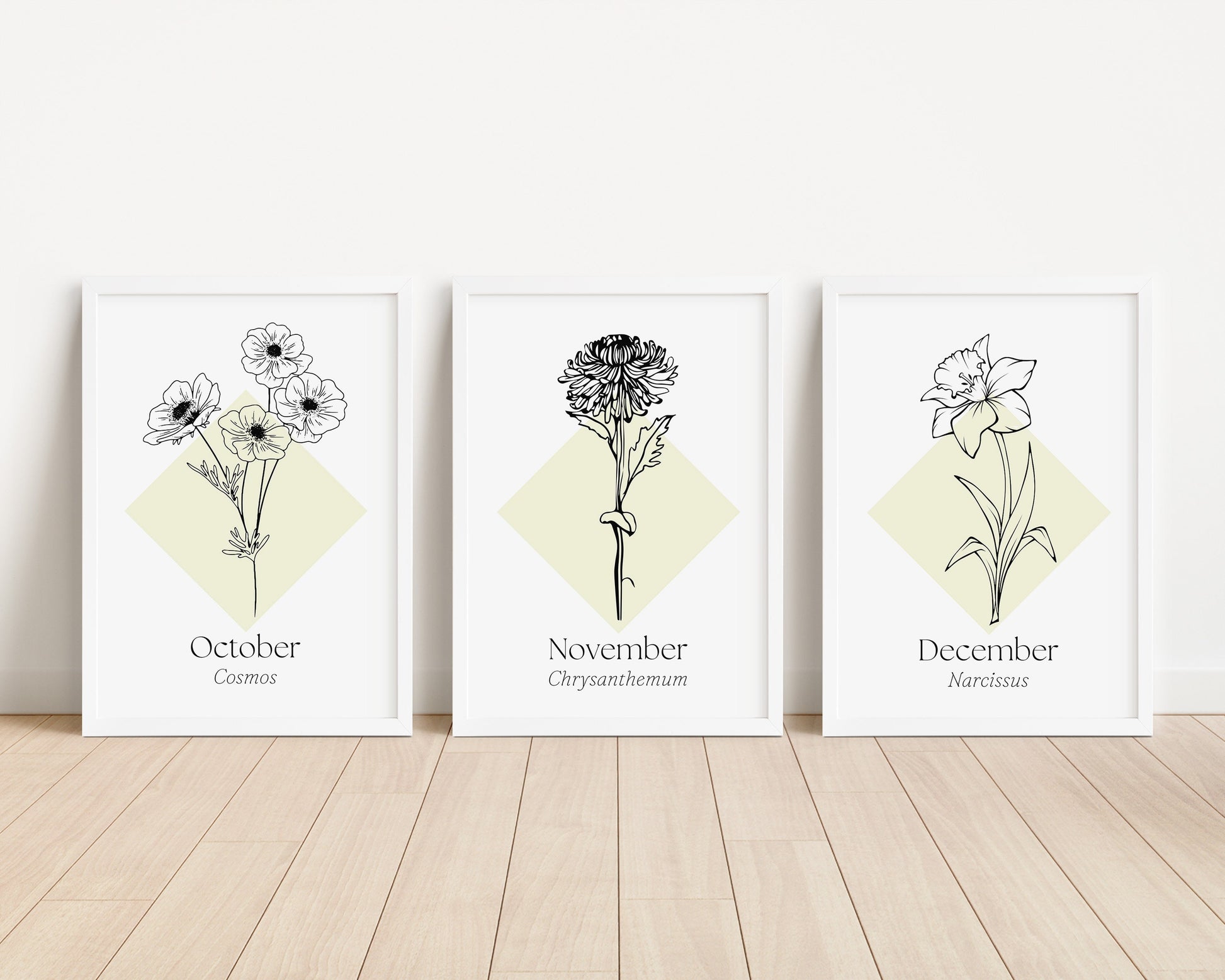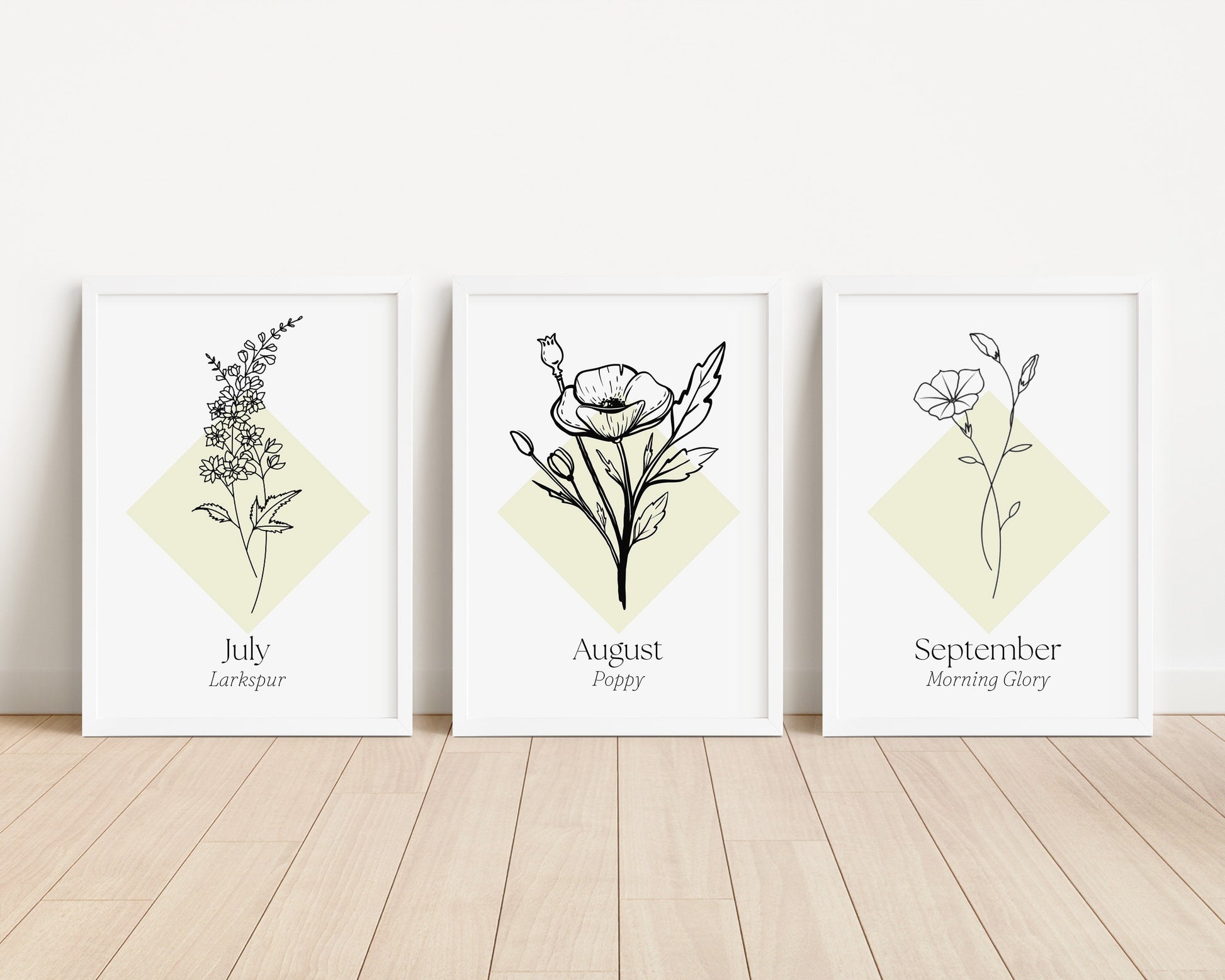 These Birth Flower Wall Prints are designed to mix and matched to the months special to you. You can order individual prints or sets. The birth flowers symbolise the month each amazing person in your family was born.