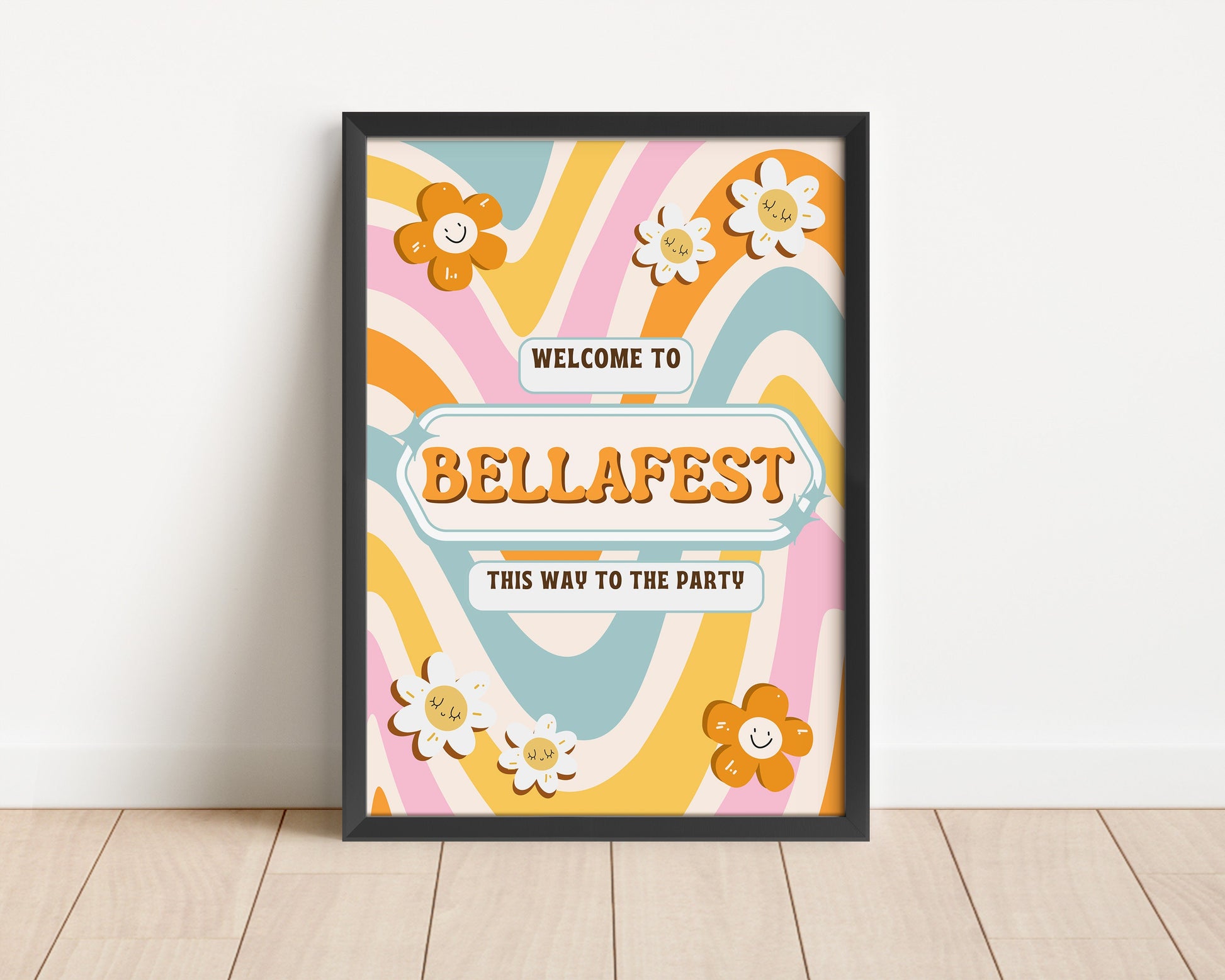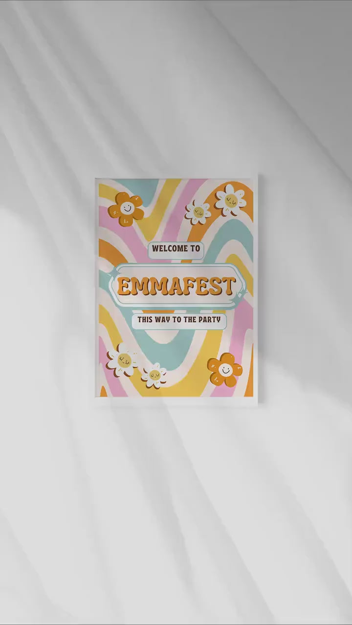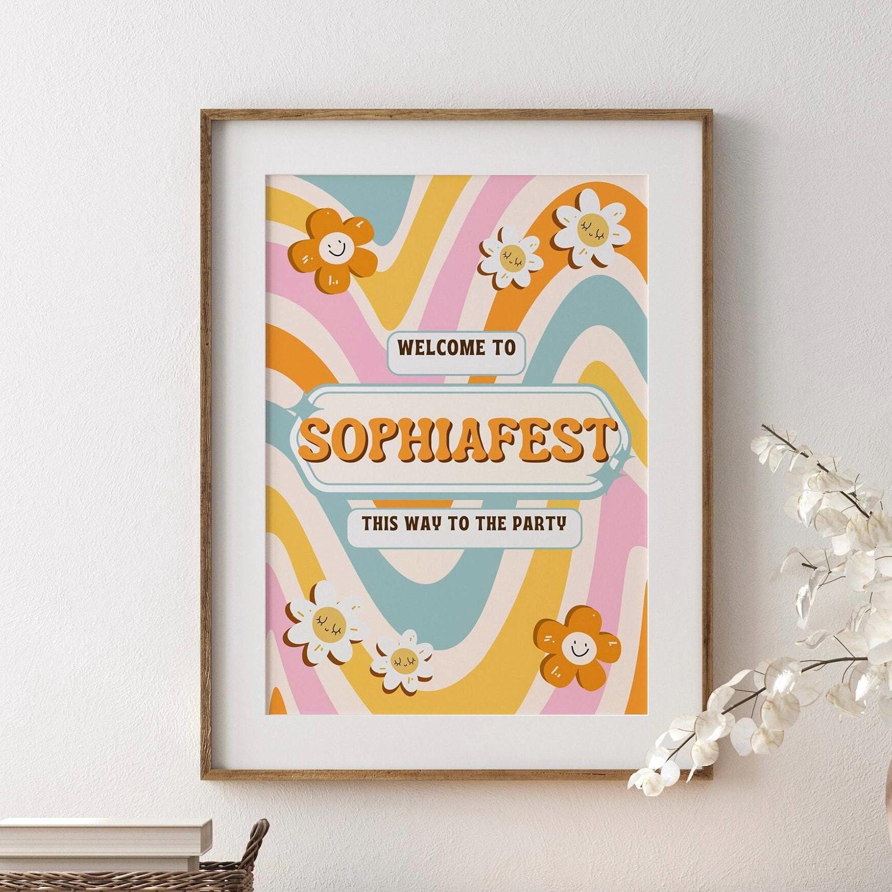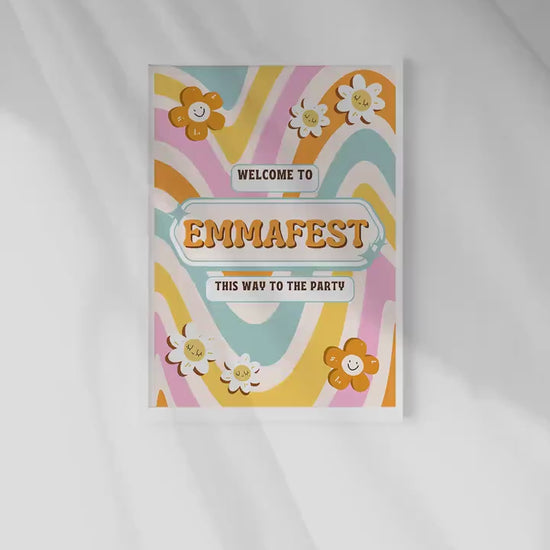 Our vibrant groovy festival poster is the perfect welcome decor to set your themed occasion off in the right way! with sharp colours and custom text this poster is an amazing way to set the tone of any festival themed party. Set the scene with this 60's / 70's theme poster with super vibrant colours and fully personalised to order.
