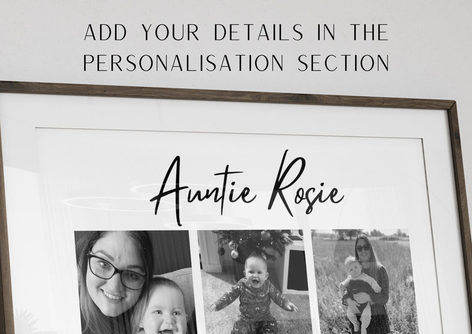 Custom Auntie Photo Gift, Personalised Aunt Print from Niece Nephew, Aunt Birthday Keepsake, Unqiue Aunty Gift, Birthday Gift for Sister
