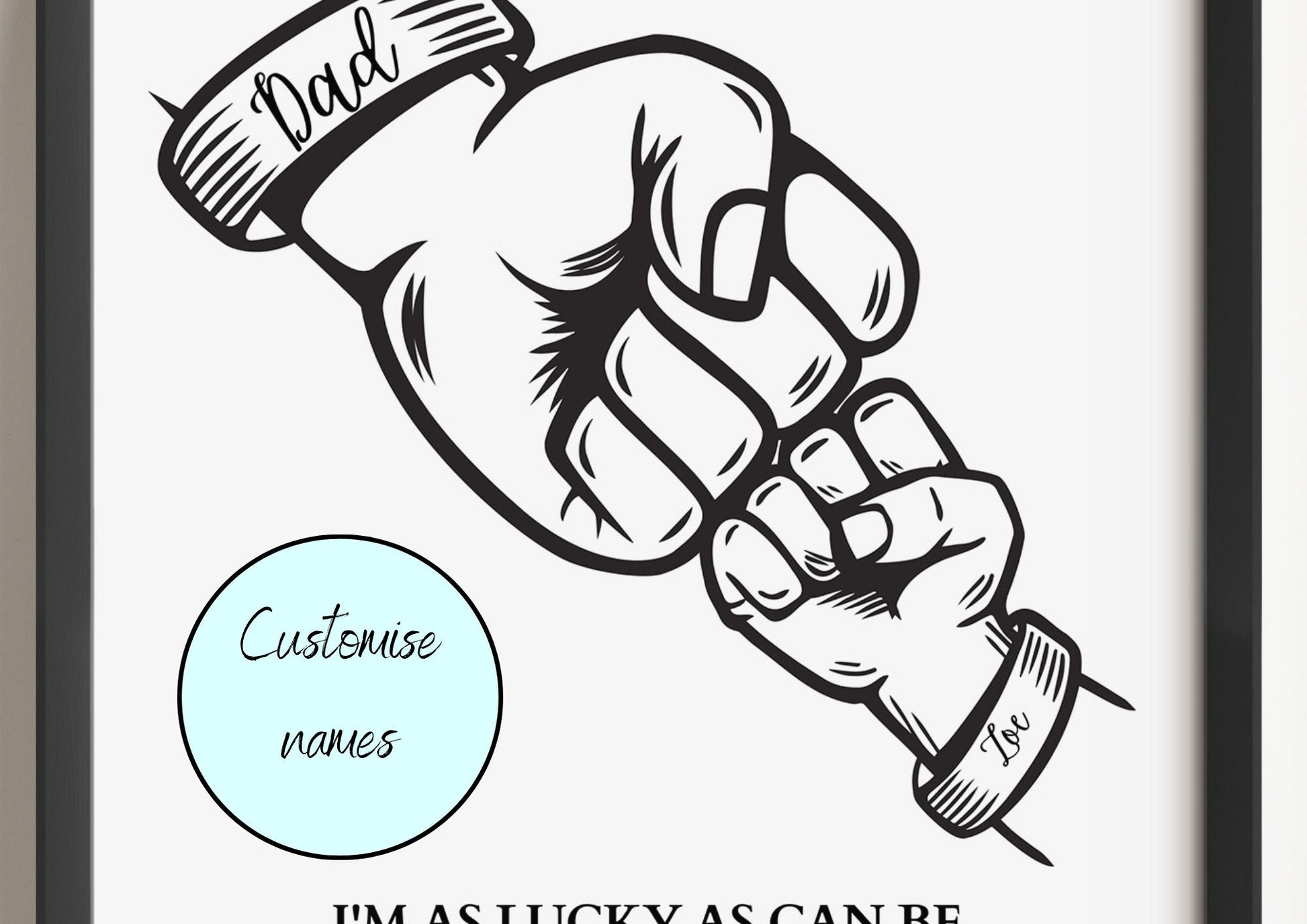 Custom Daddy Fist Bump Gift Print, Father's Day, New Dad Present from Baby, Minimalist Line Art Decor, Dad Birthday Frame, Husband Wall Art