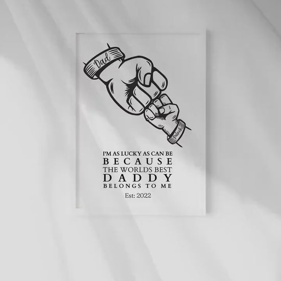 The quote reads 'I'm as lucky as can be because the world's best daddy belongs to me.'