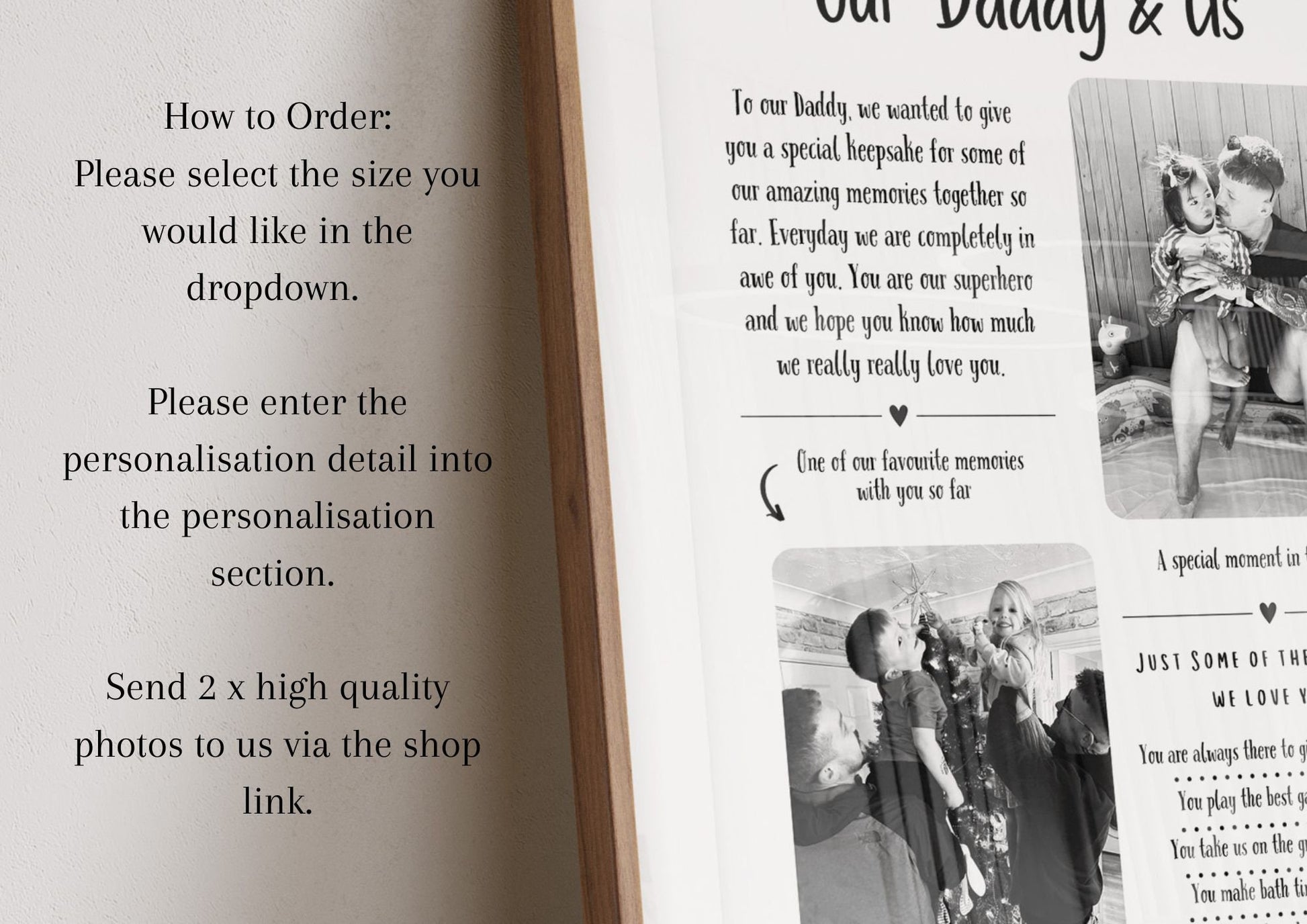 Custom Daddy Print, Family Photo Gift, Dad Birthday Present, Father Christmas Gift, Personalised Daddy Birthday Gift from Son Daughter