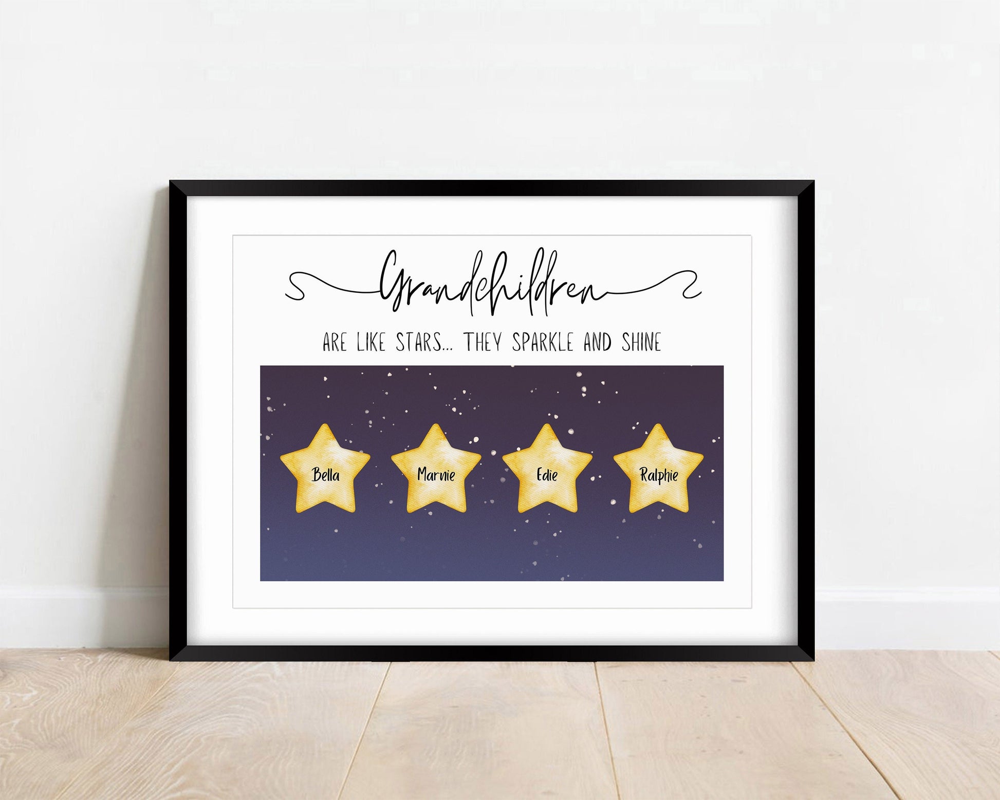 Custom Grandparents Stars Gift Print, Nana and Grandad Keepsake, Personalised Star Nanny Birthday Present, Gift from Grandson Granddaughter