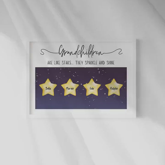 Treat some beautiful Grandparents to a sentimental gift this Birthday or Christmas with this unique personalised Grandchildren stars wall hanging. A beautiful gift for your Grandma and Grandad.