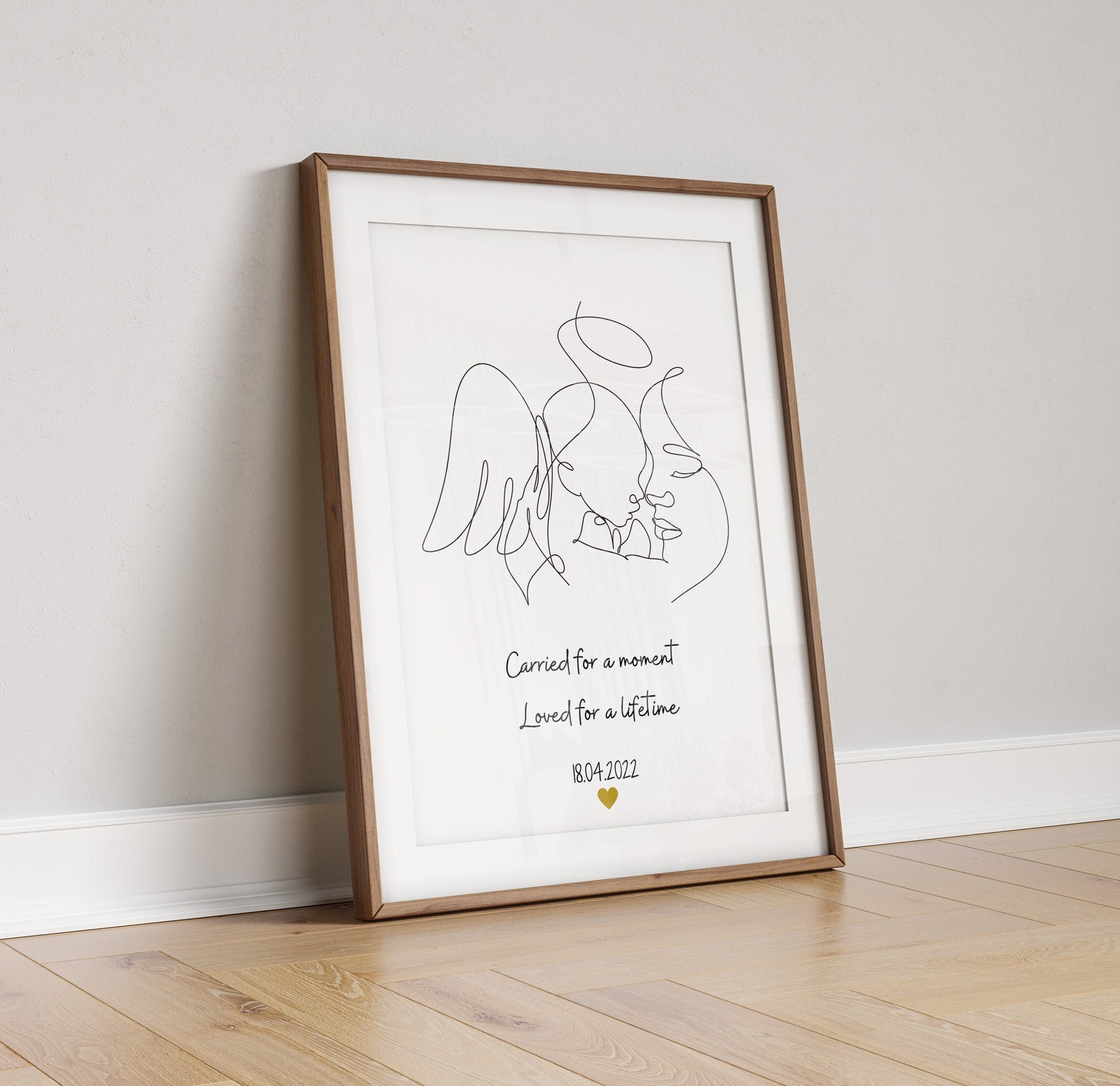 This is a gentle and heartfelt way to capture the true love felt in a tough moment in time. This affordable print can be sold as physical or digital and comes on quality. This keepsake is designed to ensure you will never forget your loved ones. This design can be personalised with names, dates or if chosen no font at all.