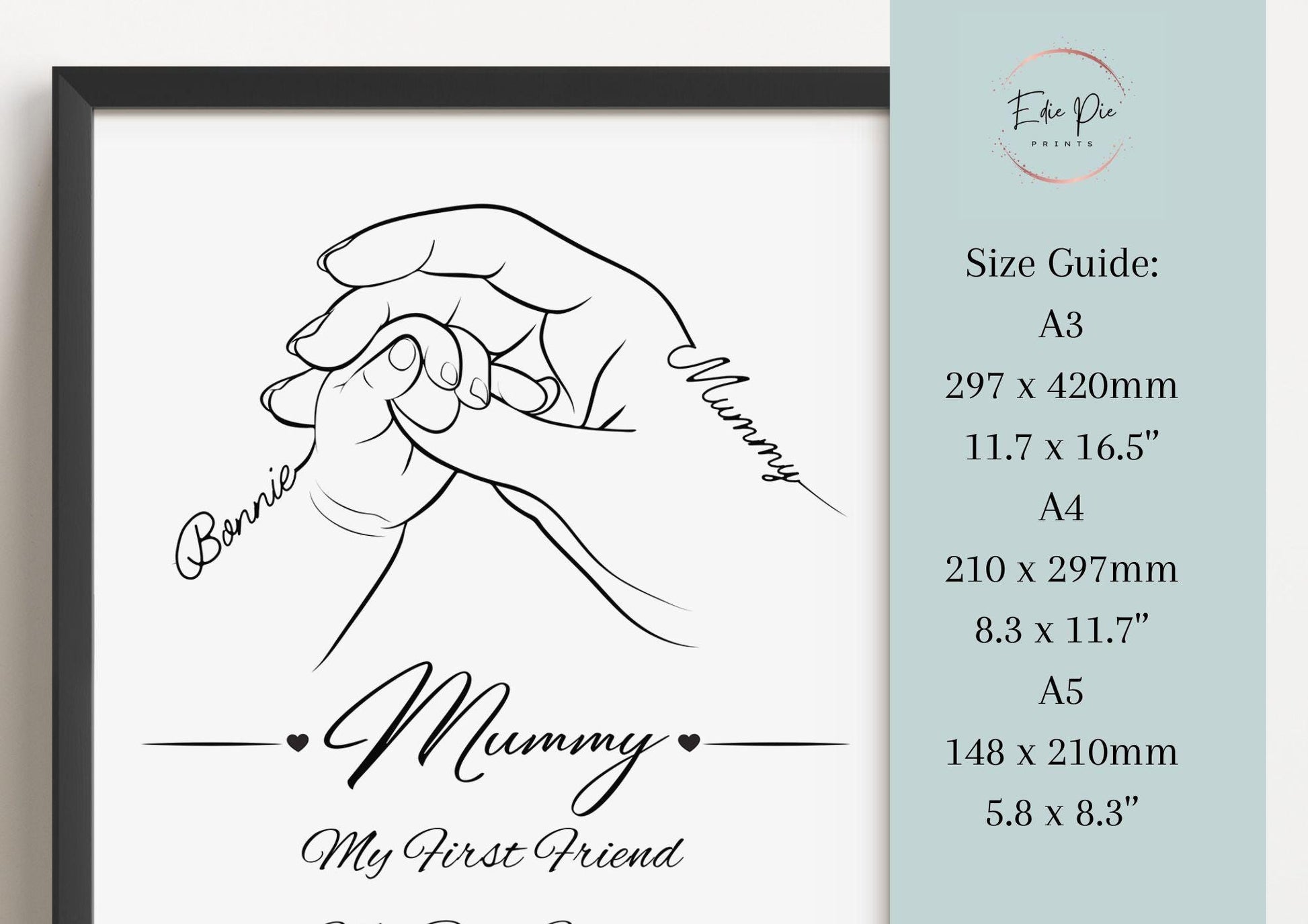 Capture the unbreakable bond between mum and child with this elegant, personalised hand-in-hand line art print. A beautiful and meaningful gift for new mums, Mother's Day, or just because, this custom piece captures the tenderness of a mother's love.