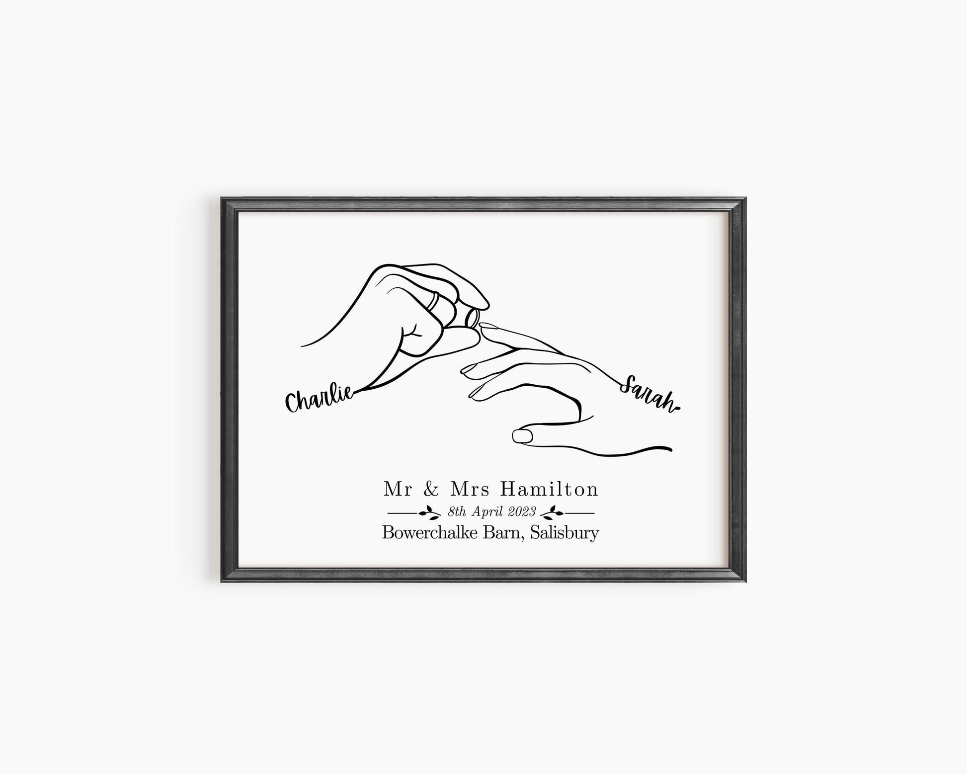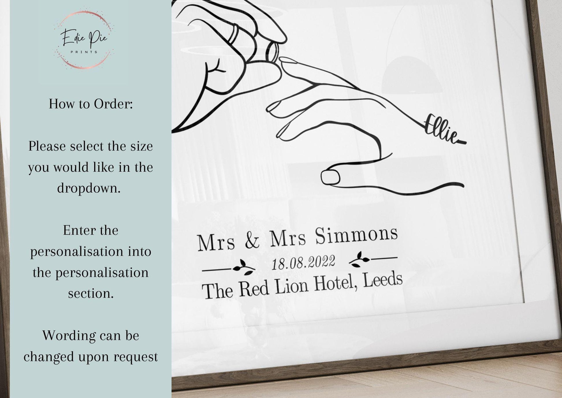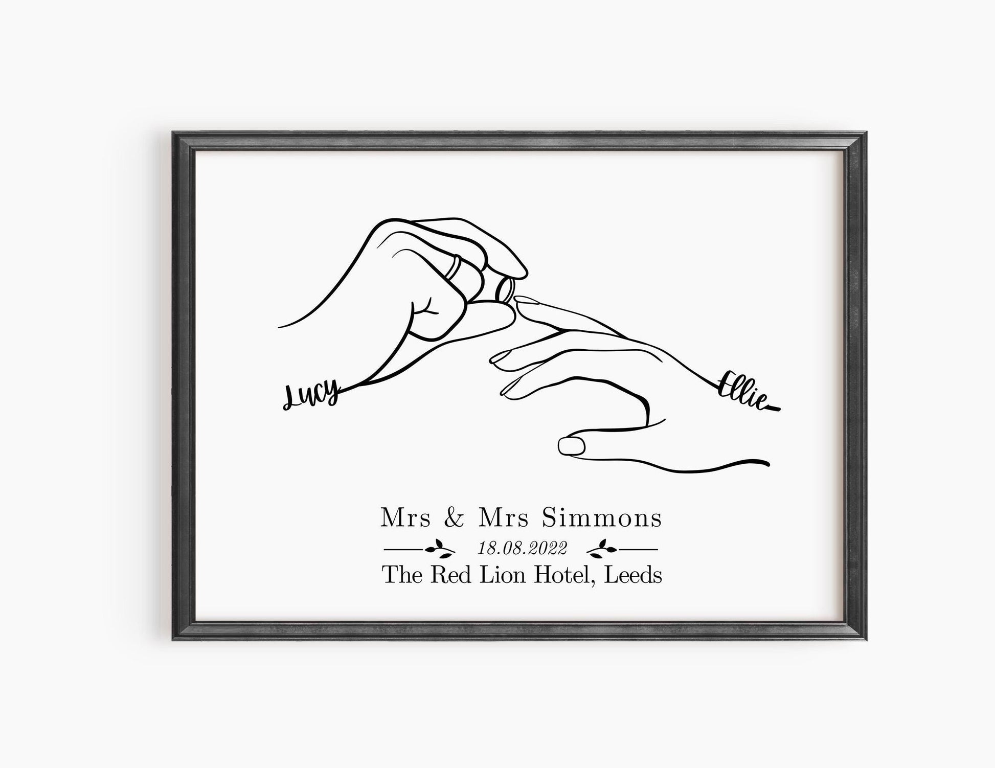 Custom Wedding Line Art Print: Personalised Couple Drawing, LGBTQ Keepsake