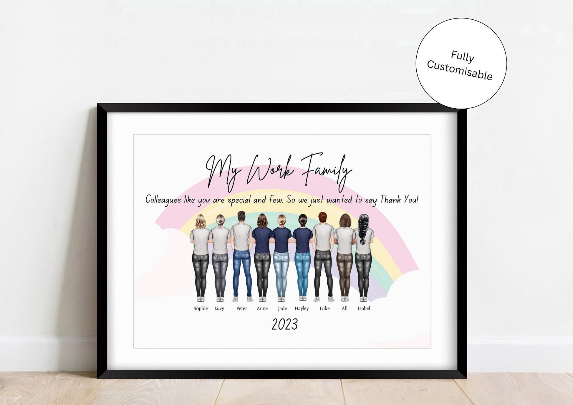 Looking for an inexpensive way to thank your work colleagues and celebrate your friendship? Look no further than our customisable work colleague friendship print! Whether you're saying goodbye to a colleague, wishing them farewell in retirement, or simply looking for a special promotion present or Secret Santa gift, our custom work family print is a perfect choice.