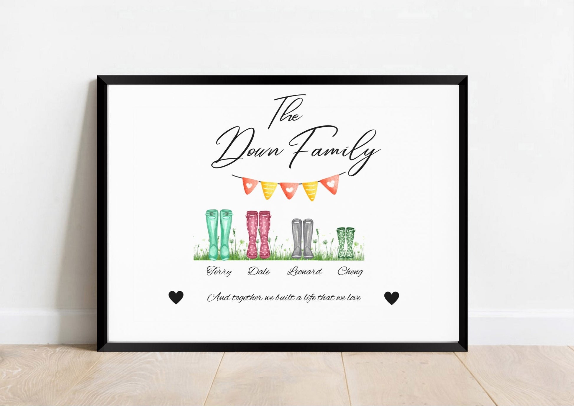 Etsy customer Family Wellies Print, Wellington Boots Christmas Gift, Framed Poster for Couple, Housewarming Present, 3-12 Family Names, New Parents Decor