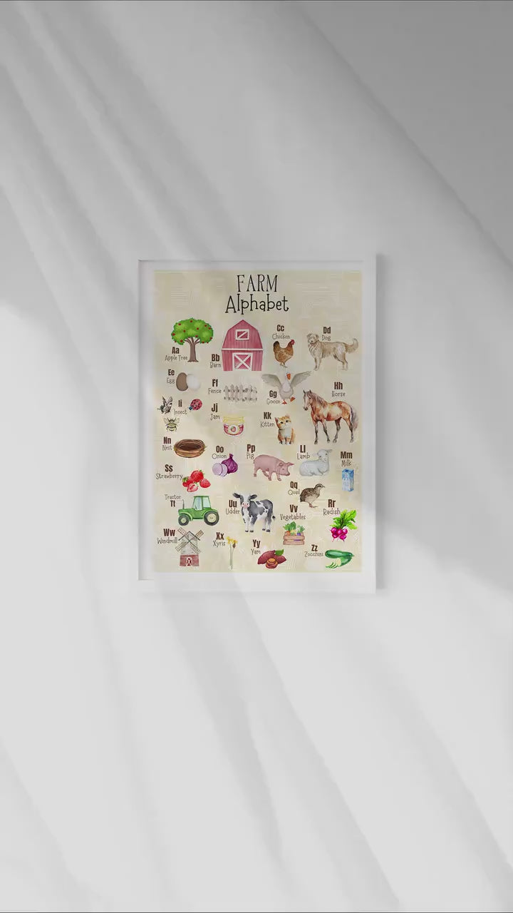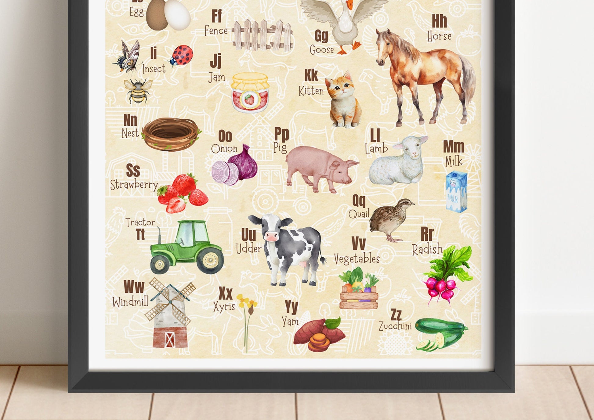 Farm Alphabet Poster: Watercolor Nursery Print, Farm Animals