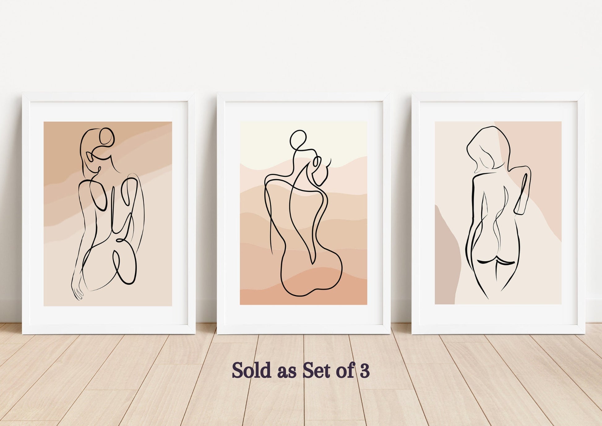 Minimalist Nude Line Art Set of 3 Prints, Abstract Female Body Wall Art, Modern Boho Decor, Neutral Aesthetic Printable Art, Gallery Decor