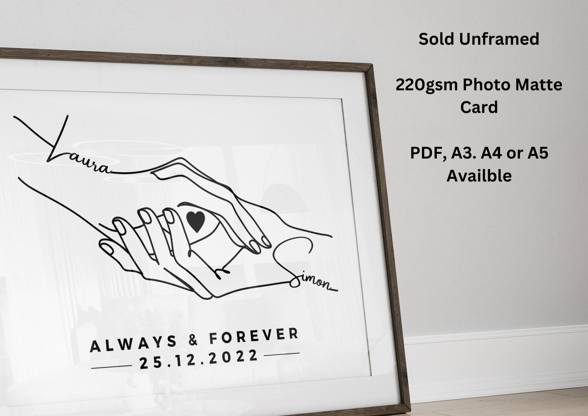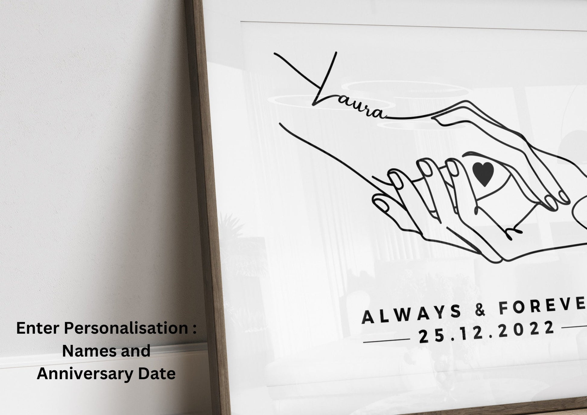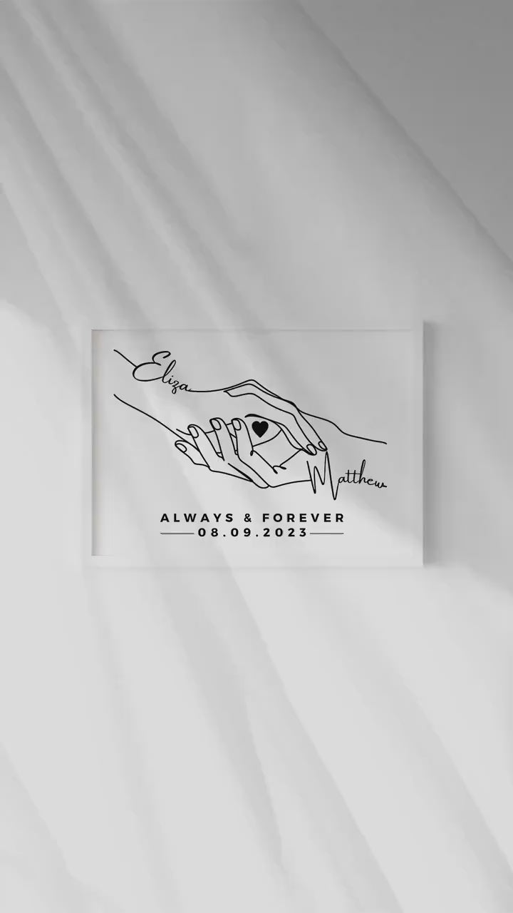 Personalised Anniversary Line Art Print,!Couple Names & Date