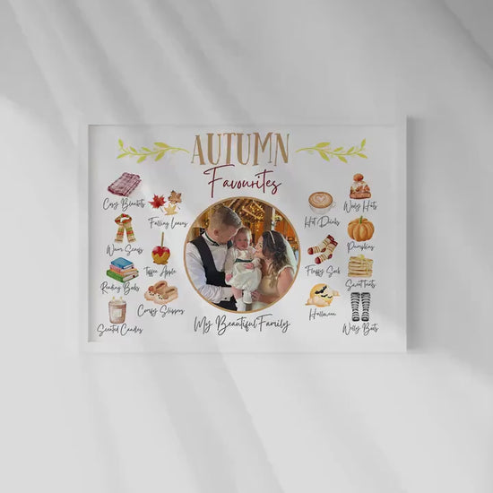 Our beautiful Autumn Favourites gift print is a lovely seasonal design which captures everything that is wonderful about the Autumn season. Centred with a special photo of an incredible family who are the best part of any fall.