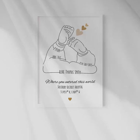 Personalised Baby Birth Print: Minimalist Line Art, Birth Stats Decor