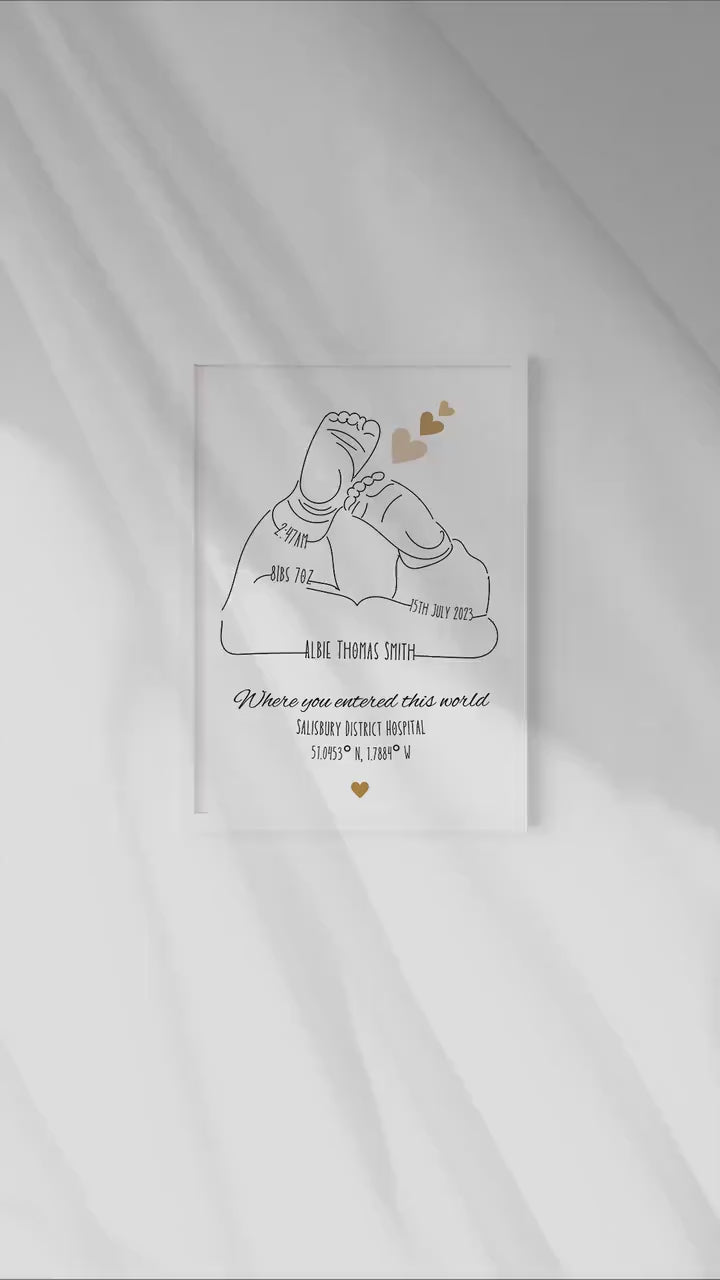 Within this beautiful line art print is the name of the new arrival, the date of birth, time, birth weight, location and we will add the coordinates.