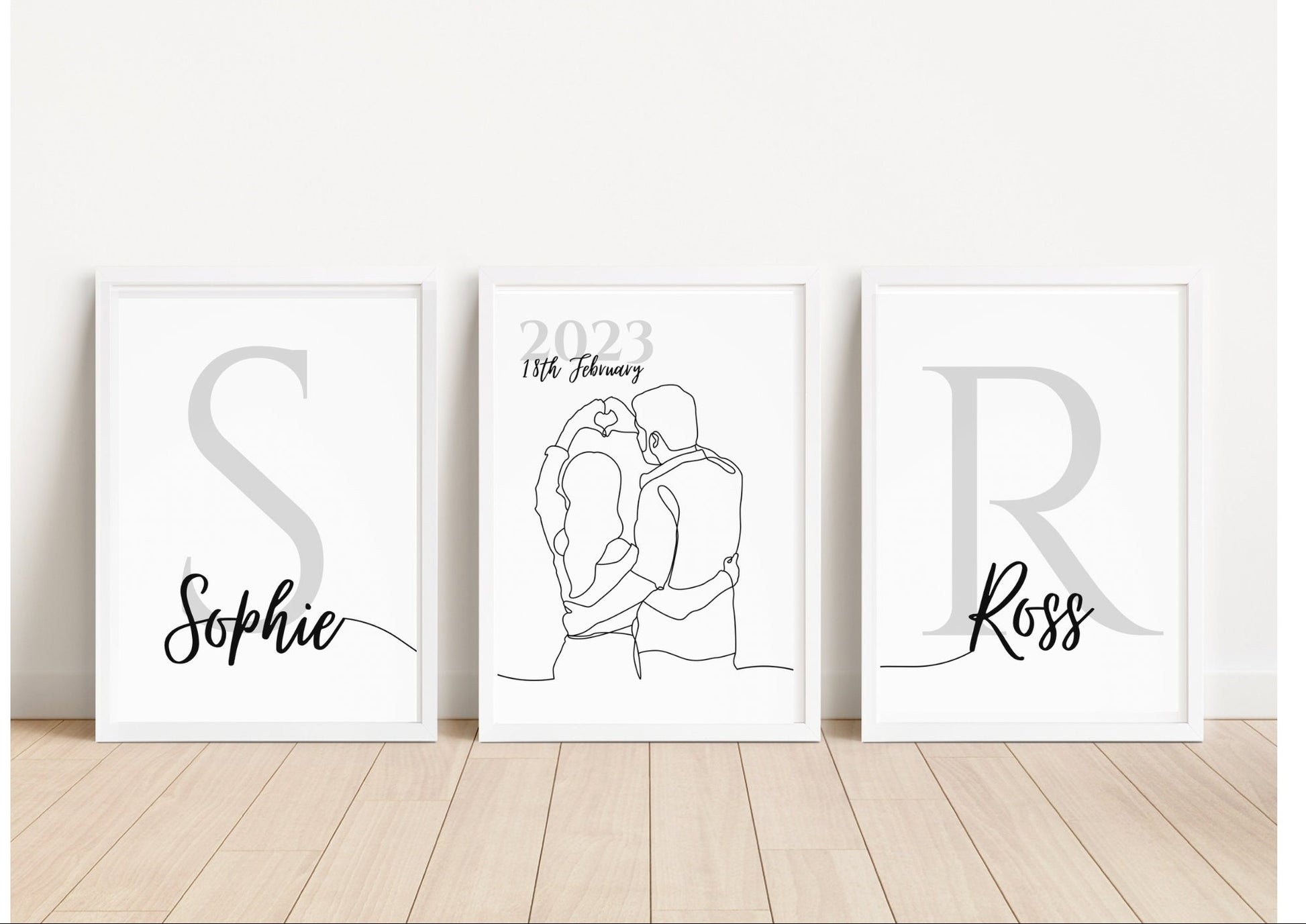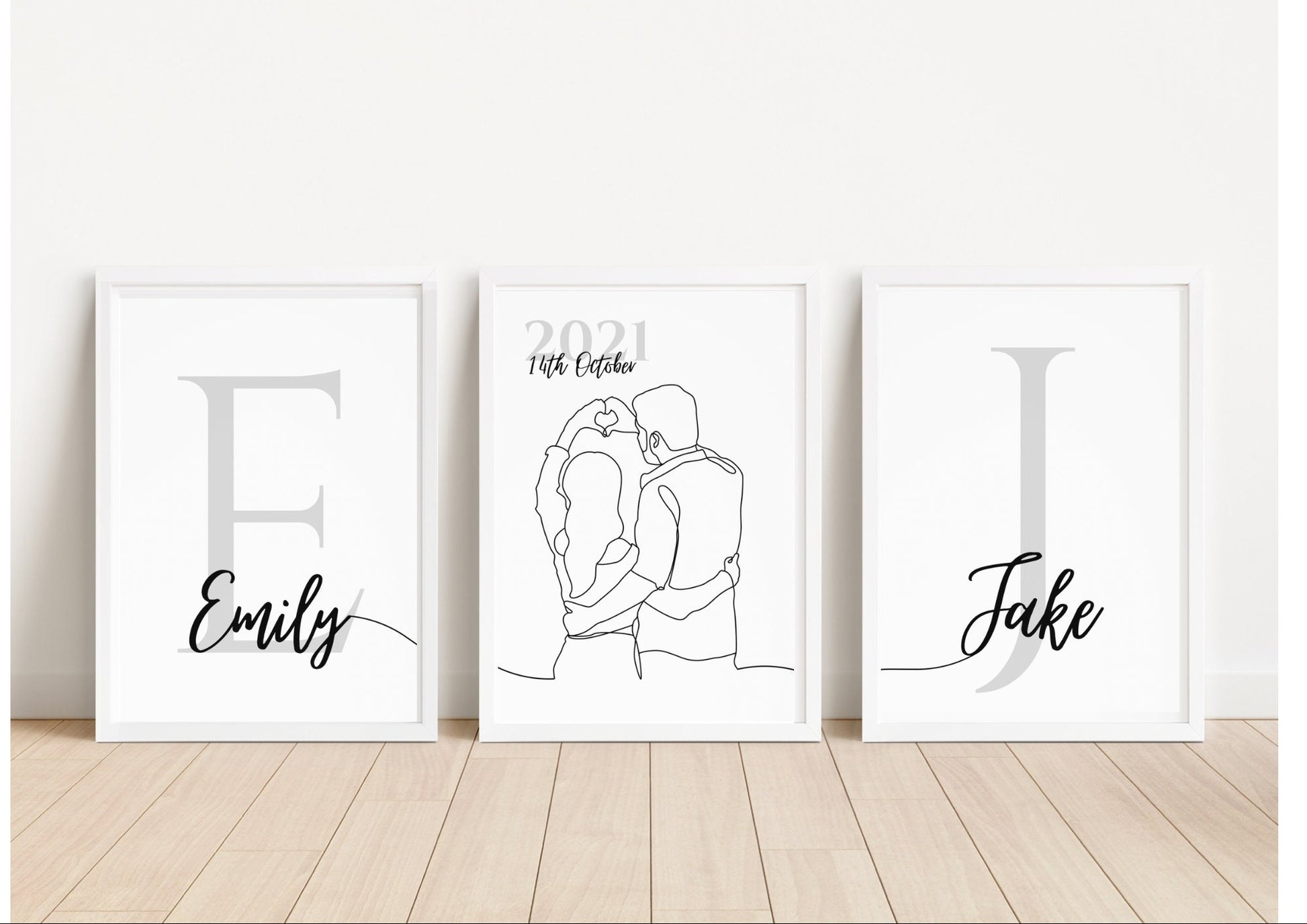 Are you looking for personalised, unique and minimalist line art wall decor to decorate your bedroom or living room walls? Then you will love our custom line art wall print set of 3! The minimalist and simple design fits every style and is a visual highlight in every room! This is a perfect gift idea for weddings, housewarmings, anniversaries and many more special occasions! Make your partner, friends, or family happy with this romantic and thoughtful custom gift!