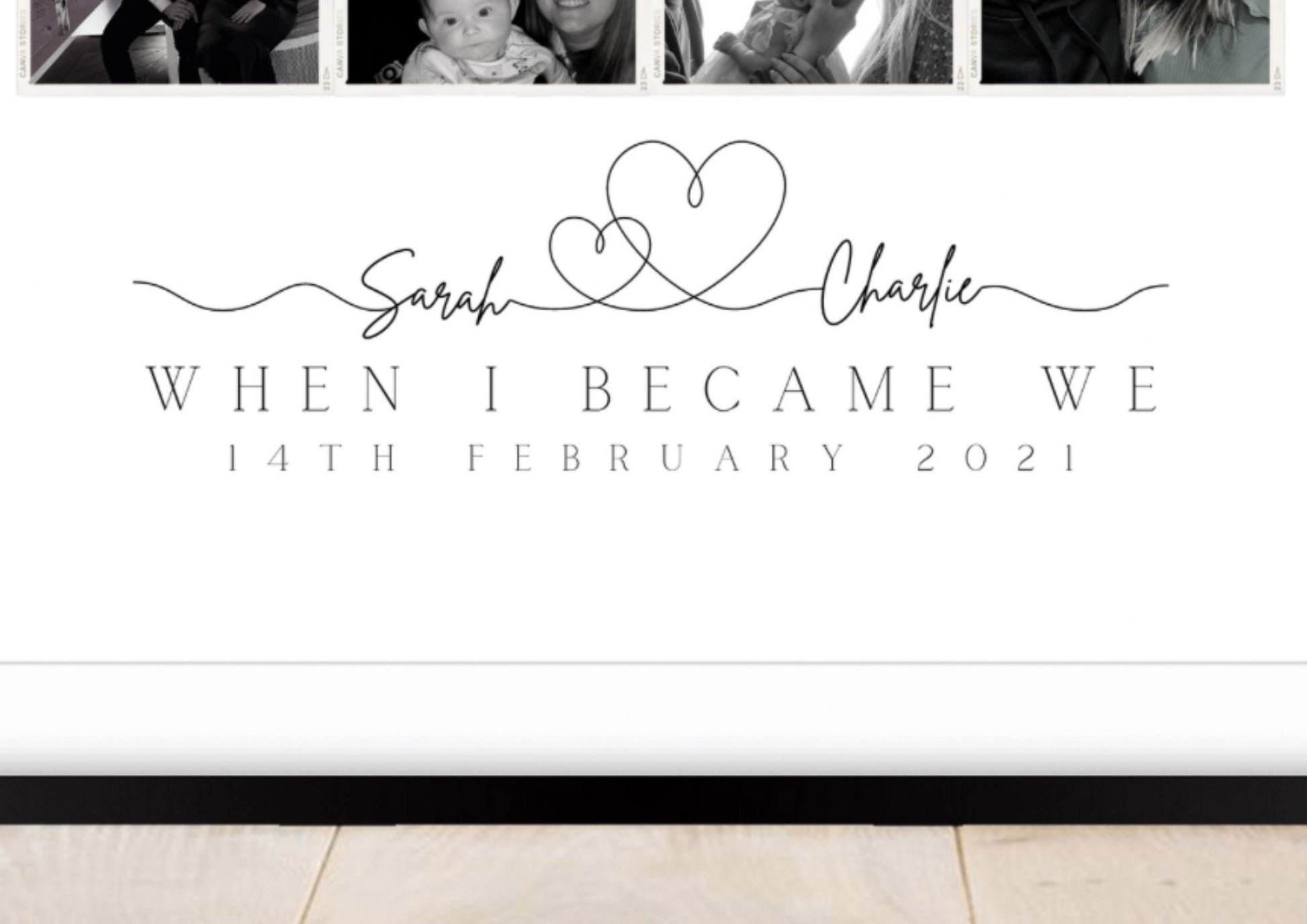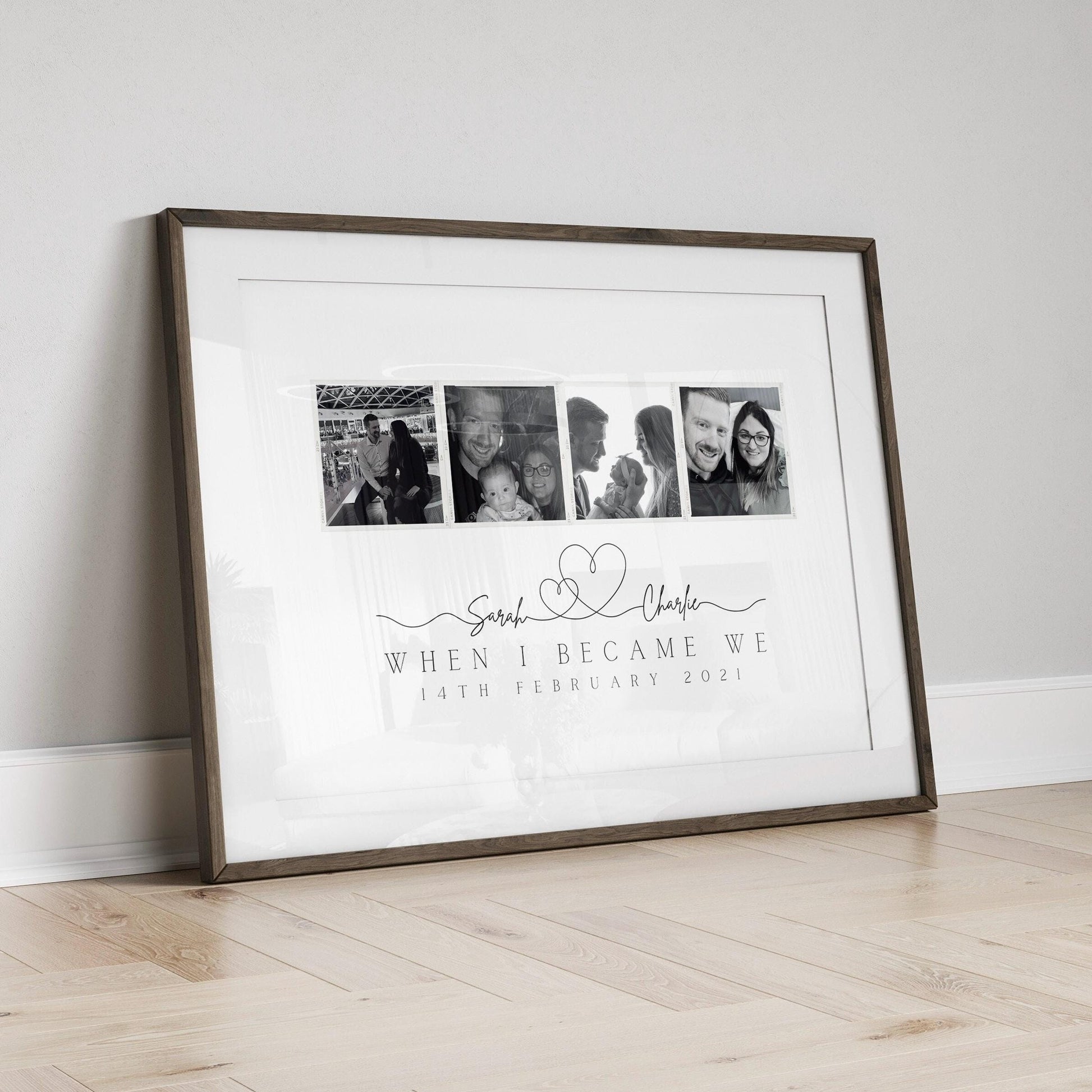 Celebrate your love story with this beautifully designed "When I Became We" personalised photo collage print.