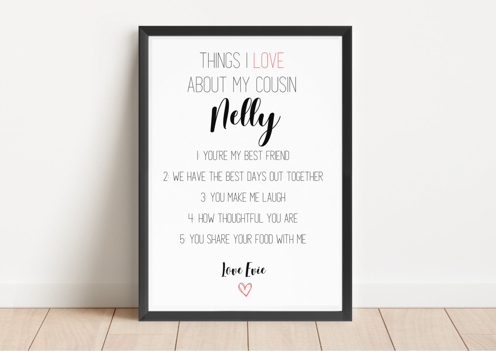 Personalised Cousin Gift: Reasons I Love You Print (A4, A5)
