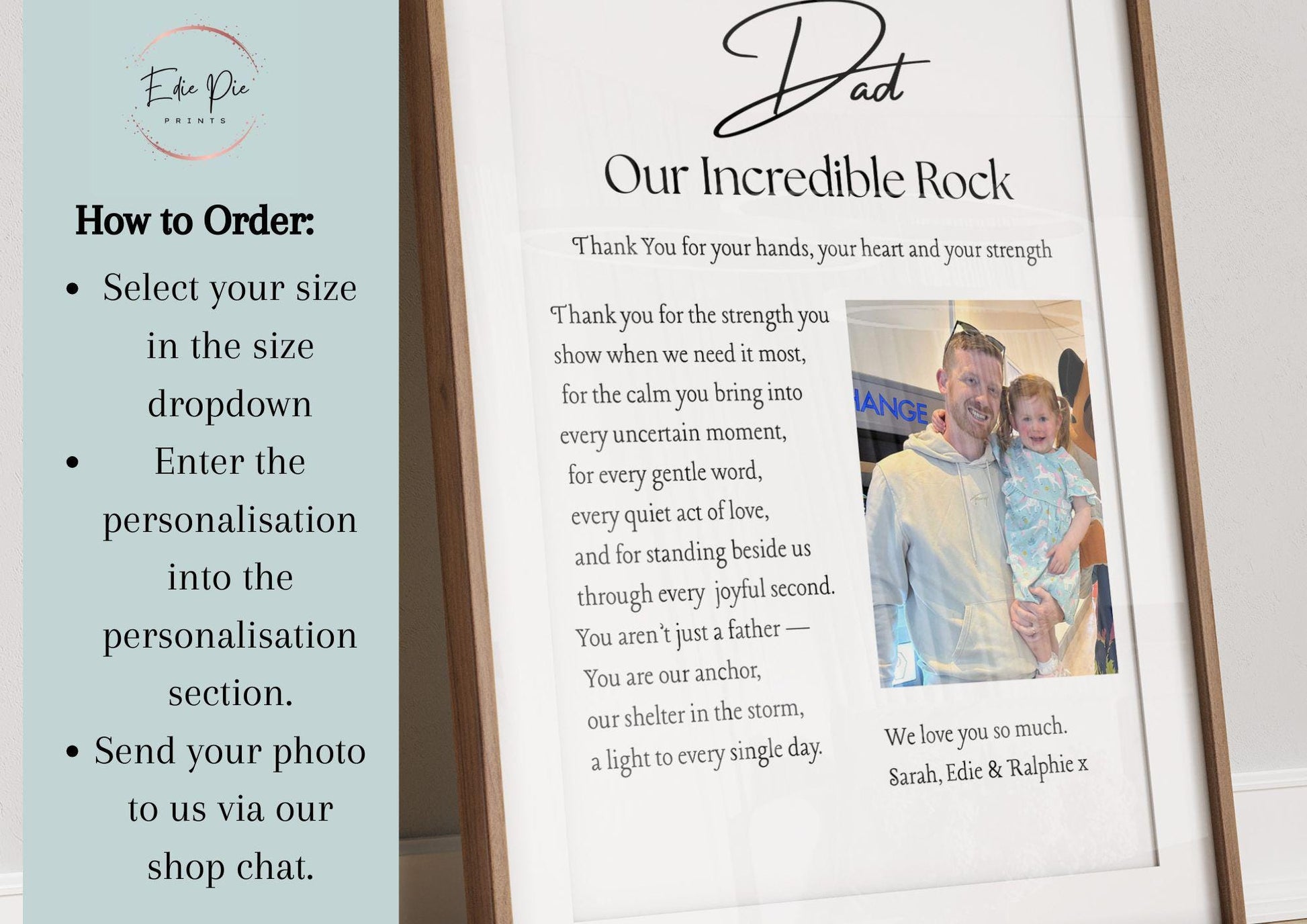The touching message celebrates his love, strength, and presence in your lives-making it a keepsake he'll cherish forever. Add your own photo (send this to our shop chat) include your names, and we'll create a one-of-a-kind framed print ready to gift and display.