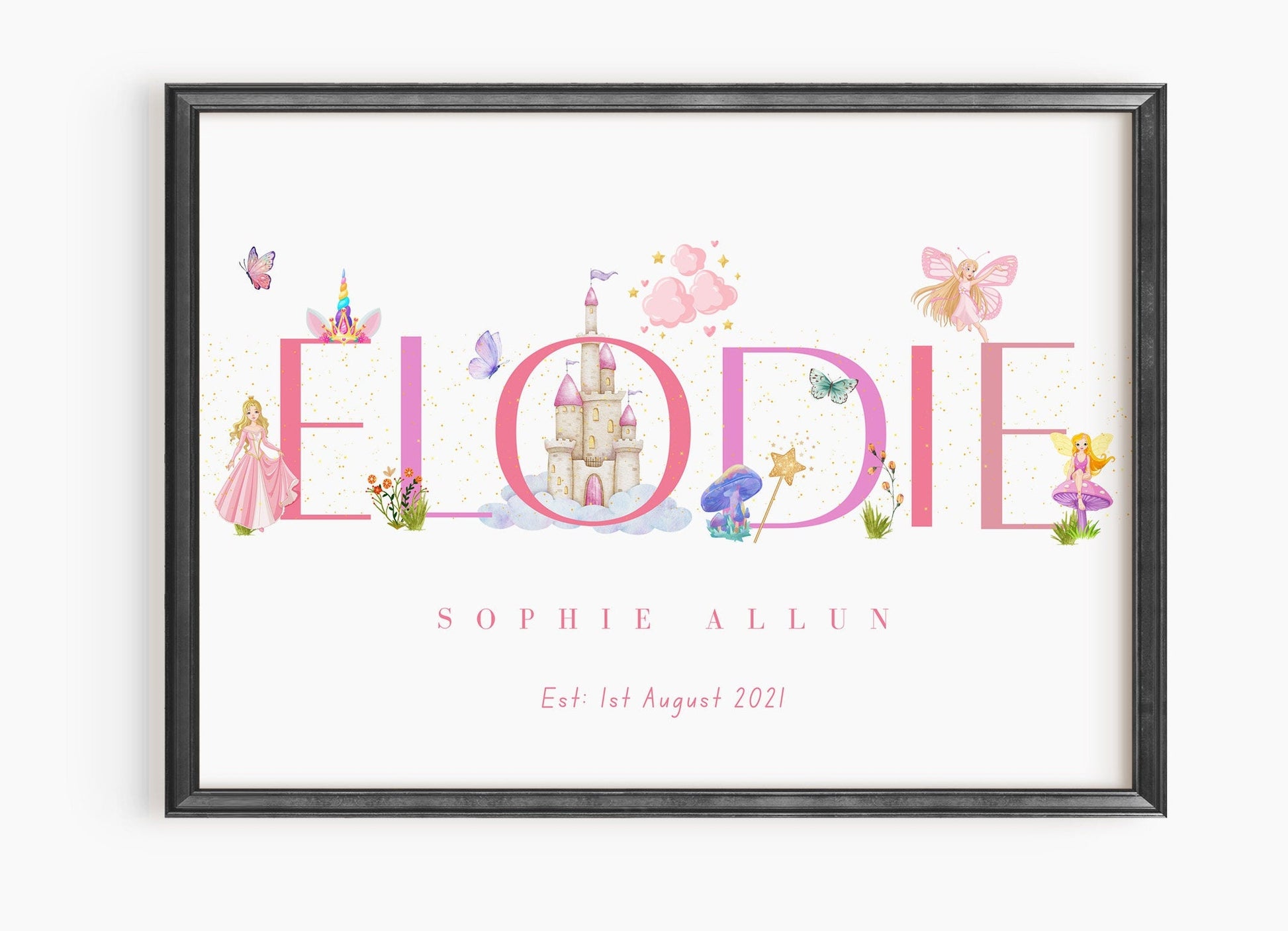 Introducing our Fairy Name Print which is fully personalised to order with cute watercolour fairytale features intwined within the letters. With stunning pink colours throughout the design and printed on our crisp white 220gsm matte photo paper.
