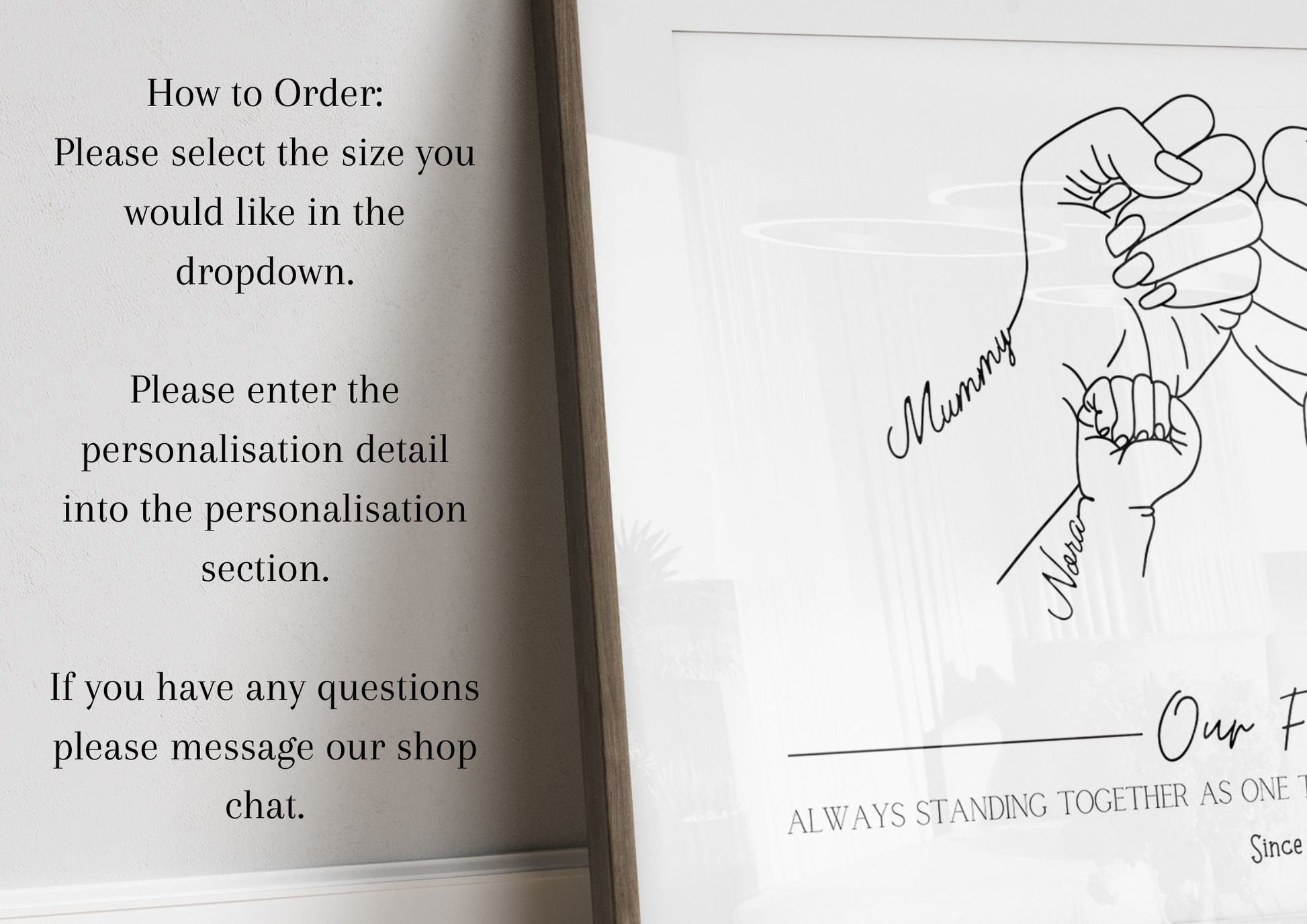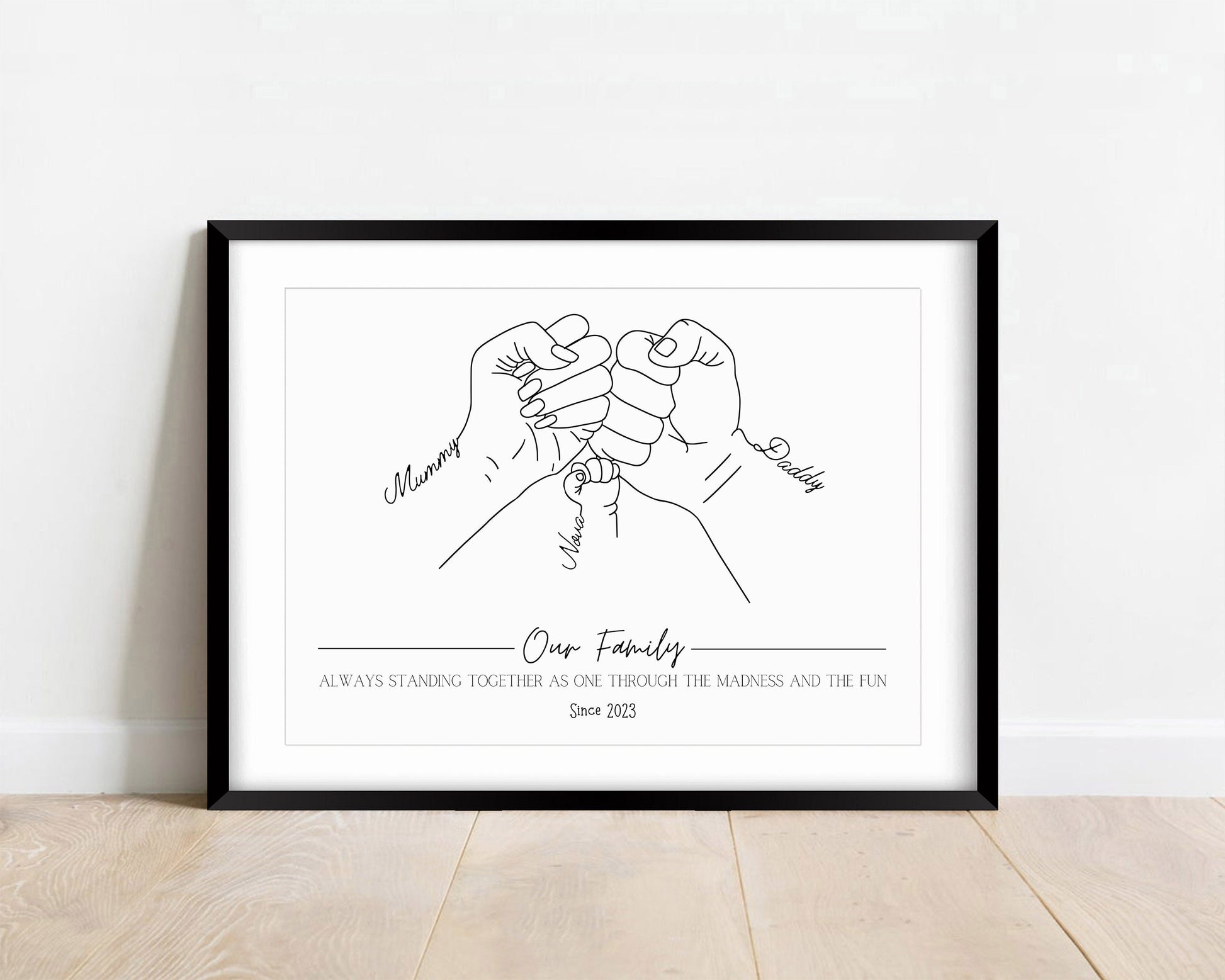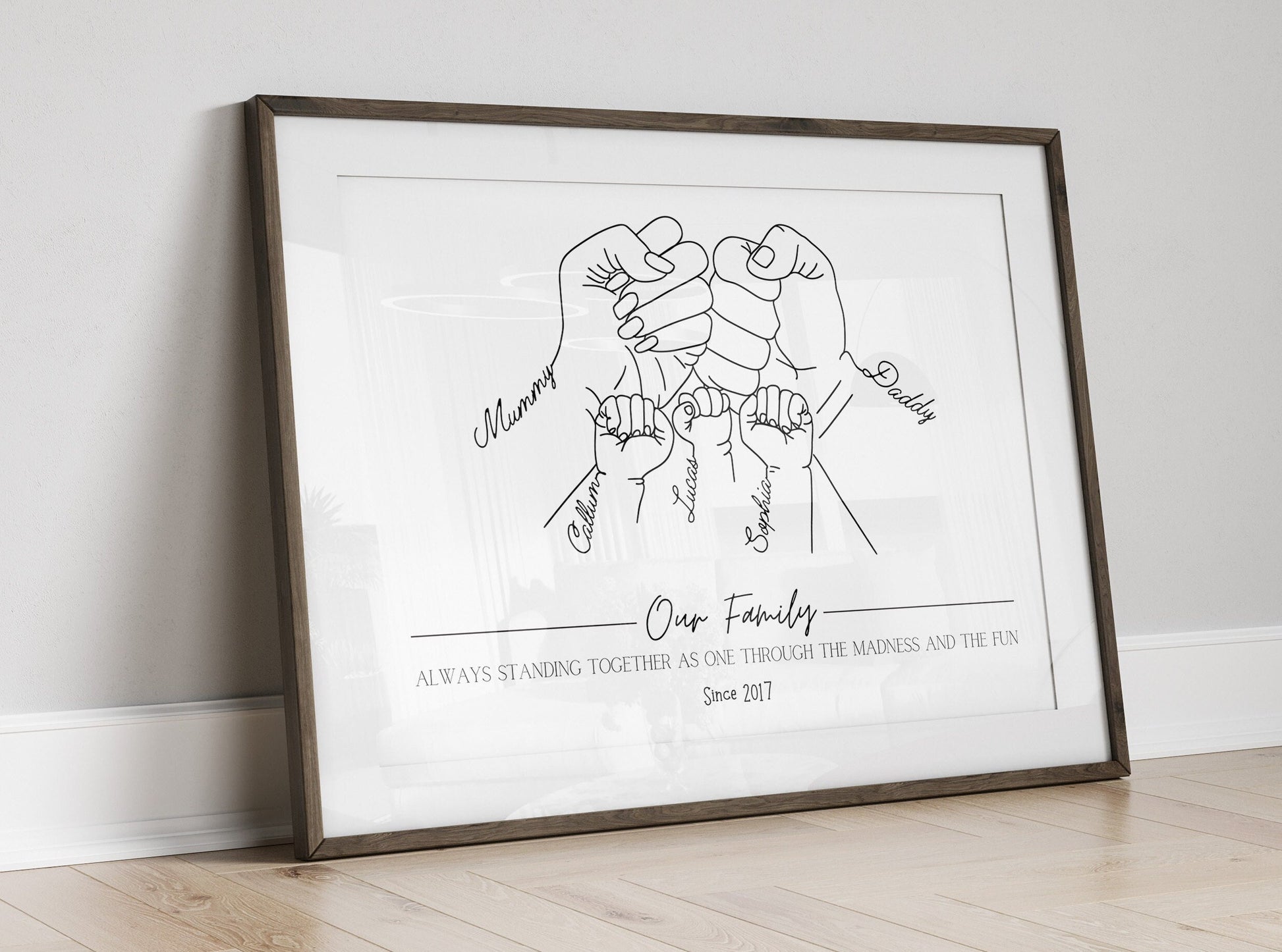 Personalised Family Fist Bump Print: Minimalist Line Art