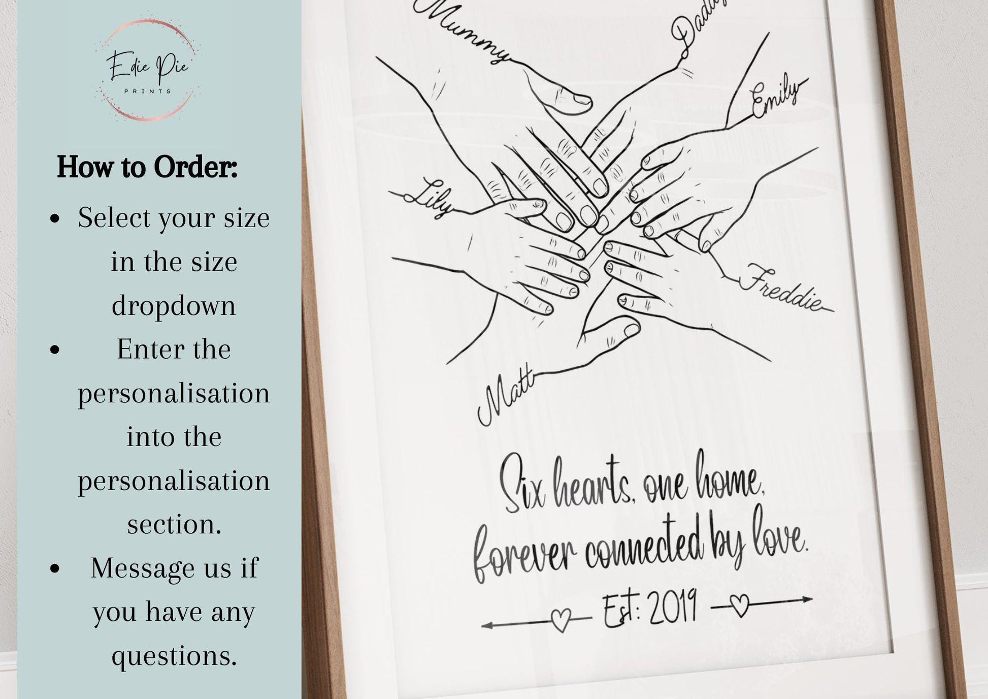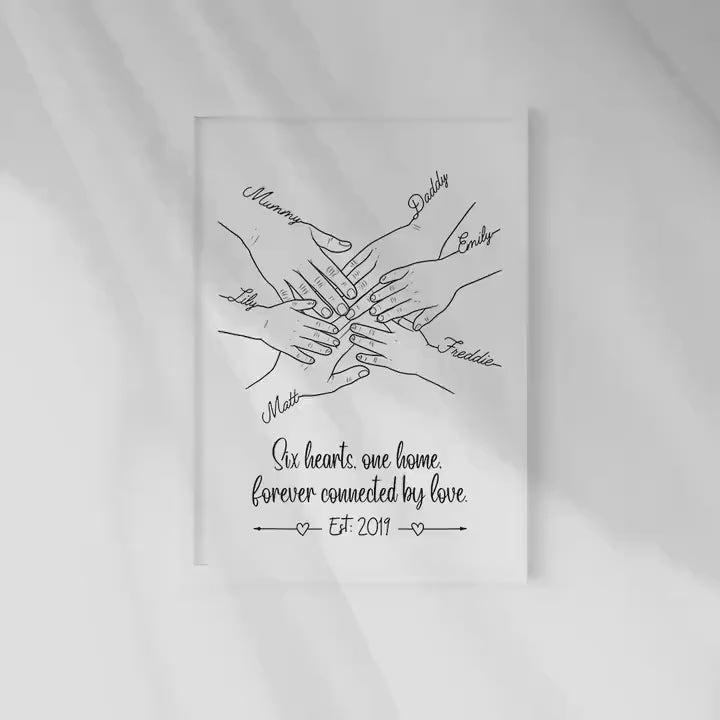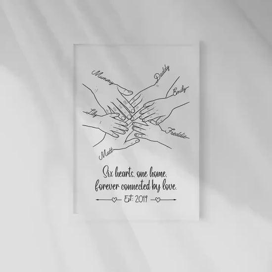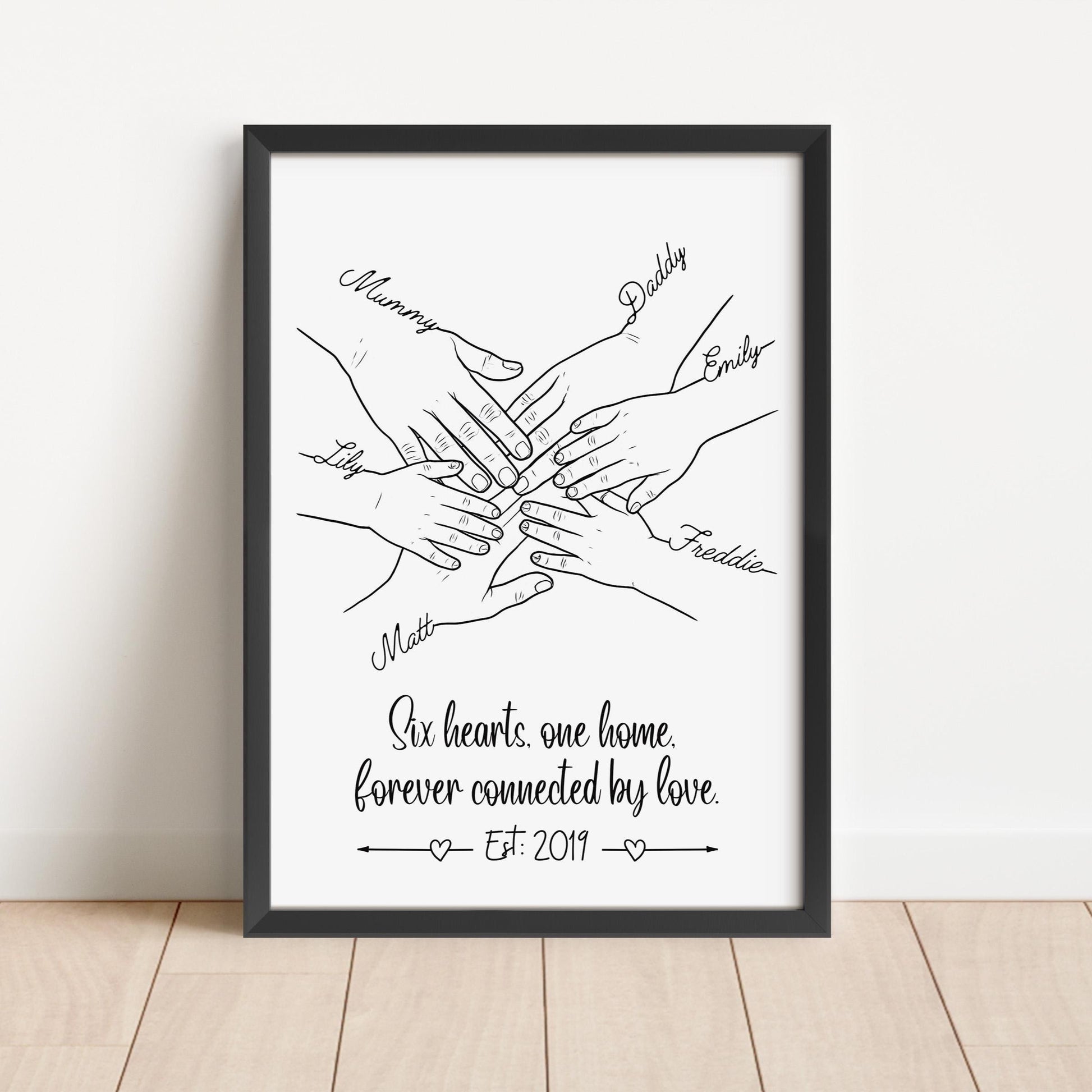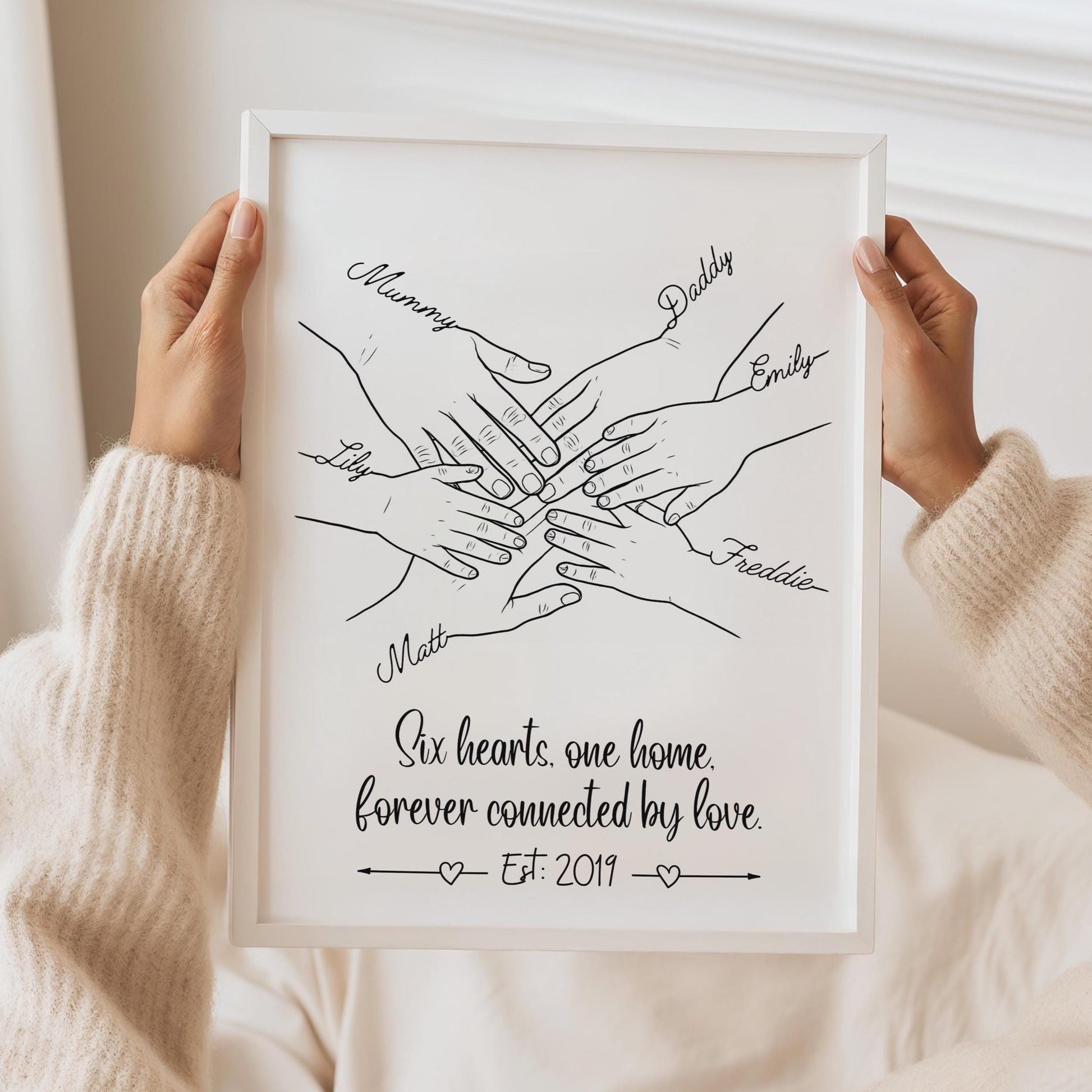 Personalised Family Hands Line Art Print: Custom Names Keepsake