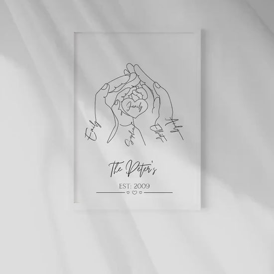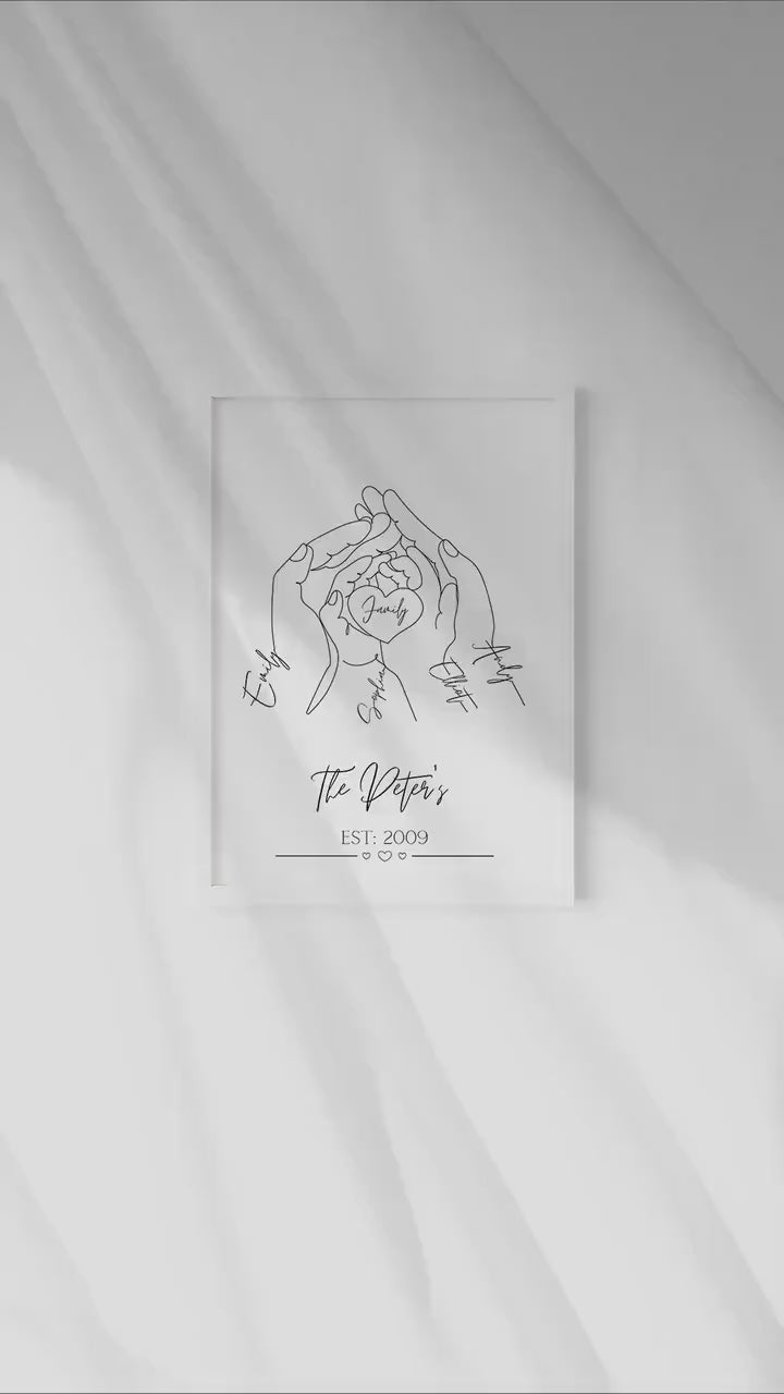 Personalised Family Hands Line Art Print: Newborn Gift