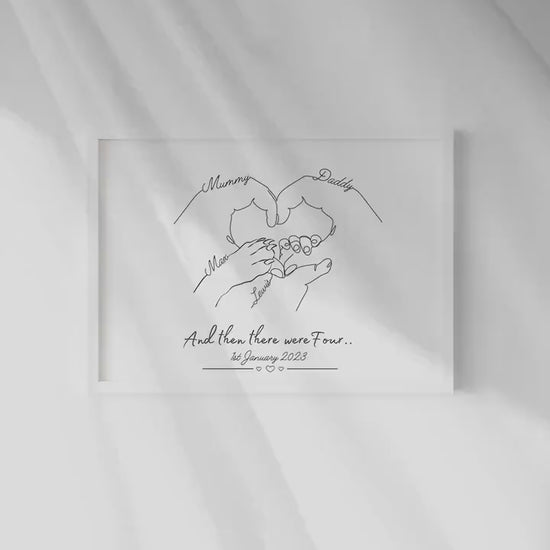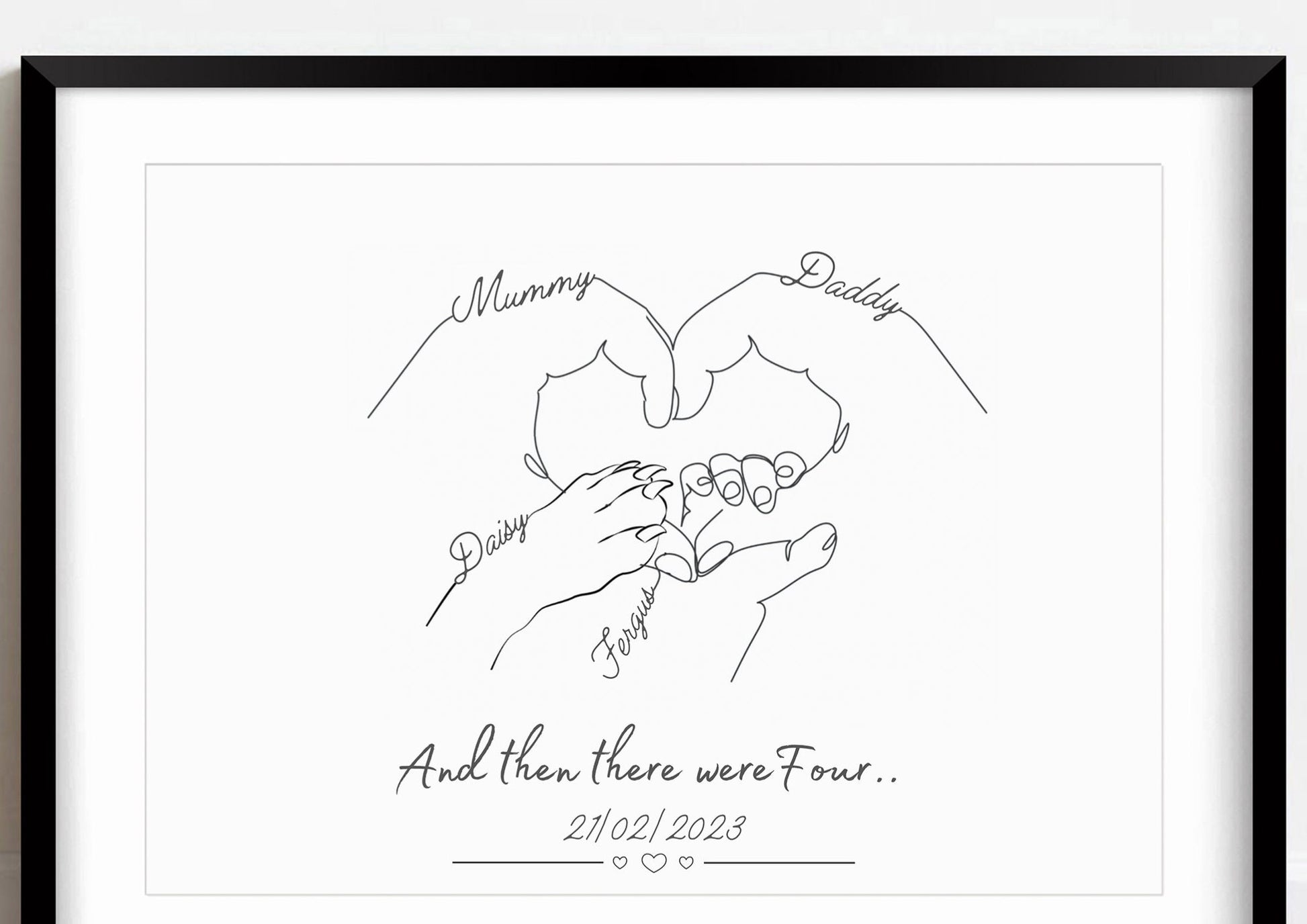Personalised Family Hands with Dog Paw, Mum Newborn Gift, New Baby Print, New Mummy Daddy Gift, Minimalist Line Art, Birthday Gift for Her