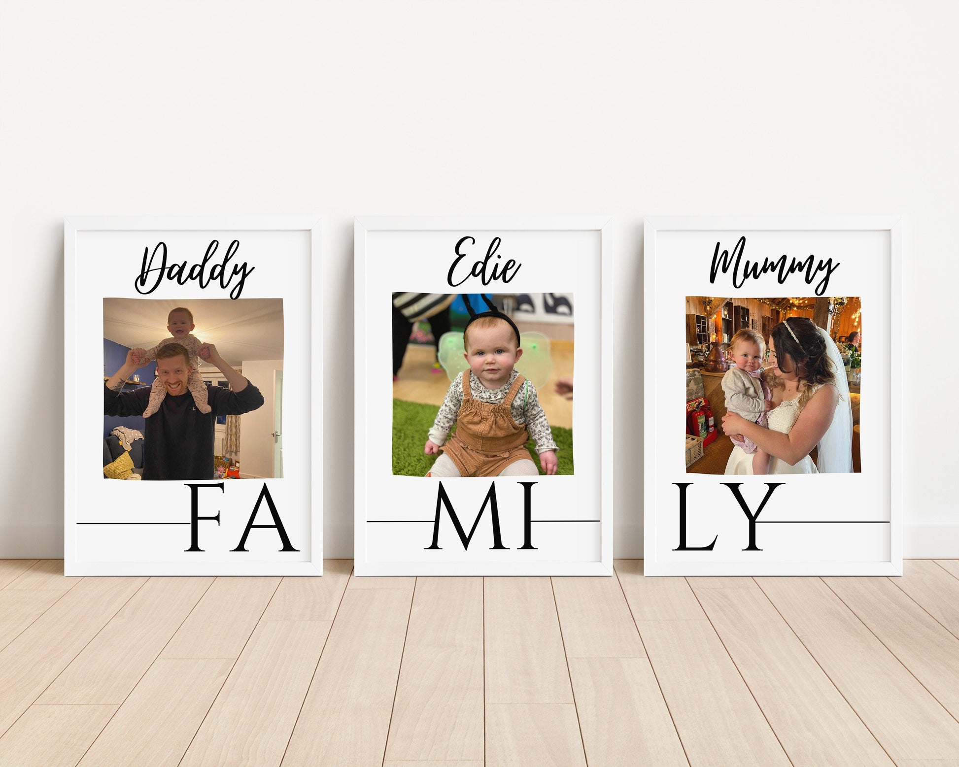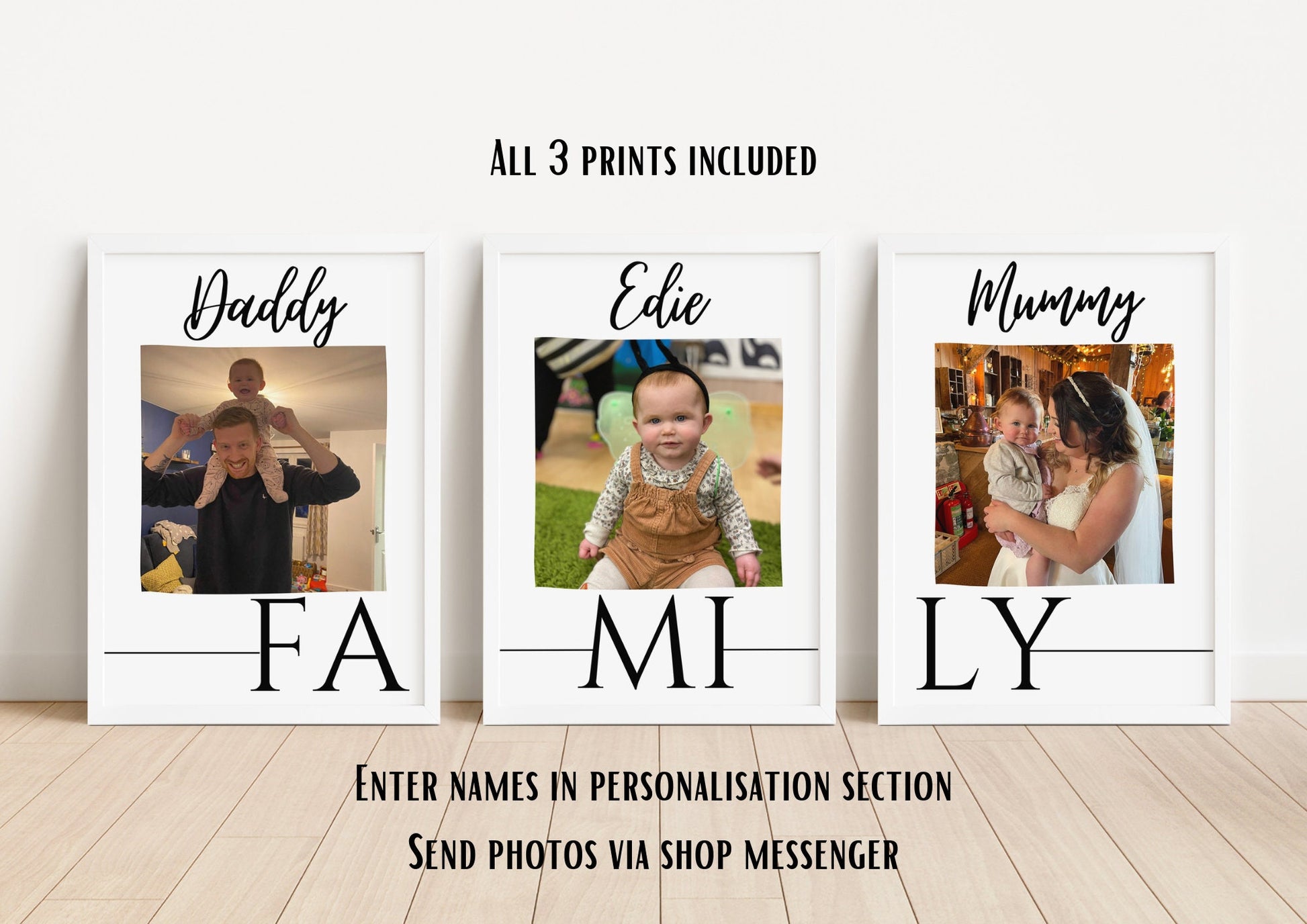 Personalised Family Photo Prints Set of 3 - Custom Name Wall Art