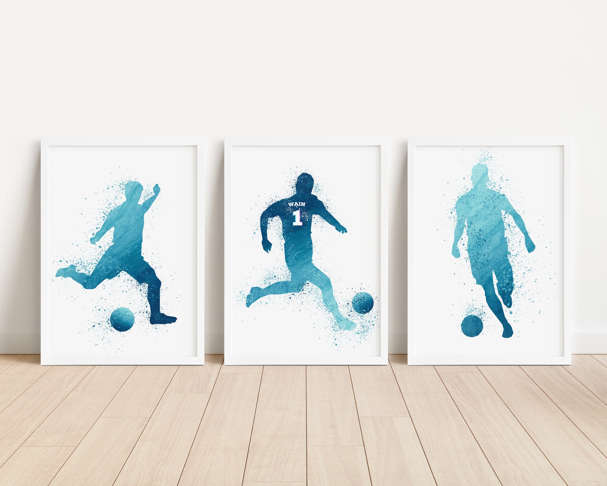 Personalised Football Player Print Set: Watercolor Splash Art (Set of 3)