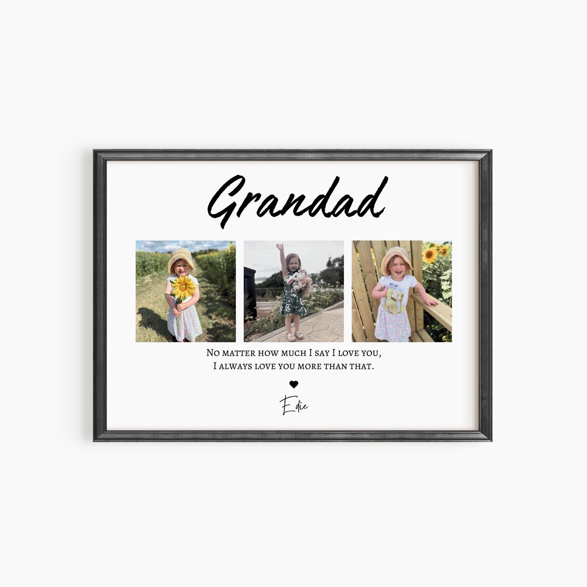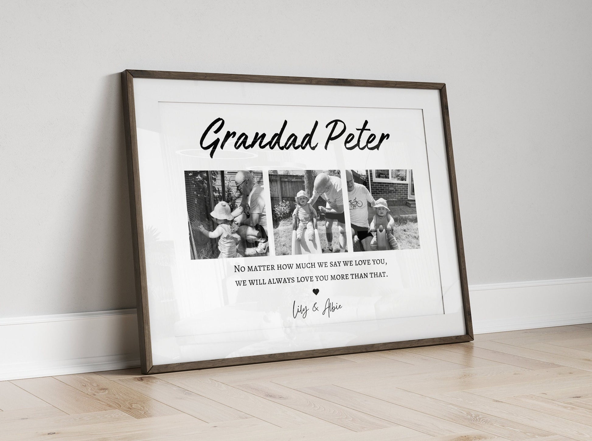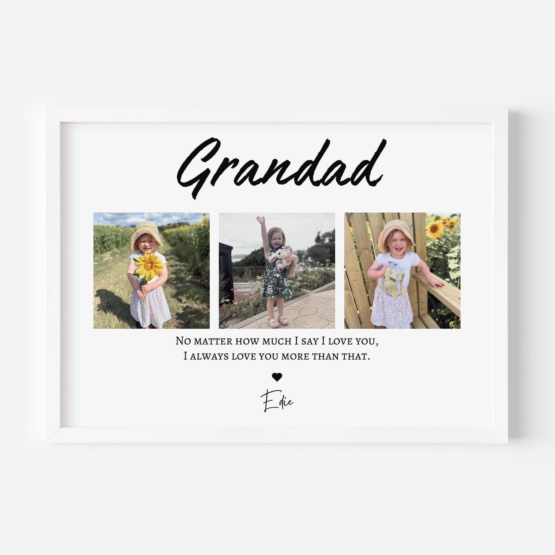 Treat an incredible Grandad with this sentimental and beautiful customised photo print. Fully personalised to order with photos that capture the wonderful relationship with their Grandpa, the children/s name and a quote that reads 'No matter how much I/ we say I/ we love you, I/we will always love you more than that.