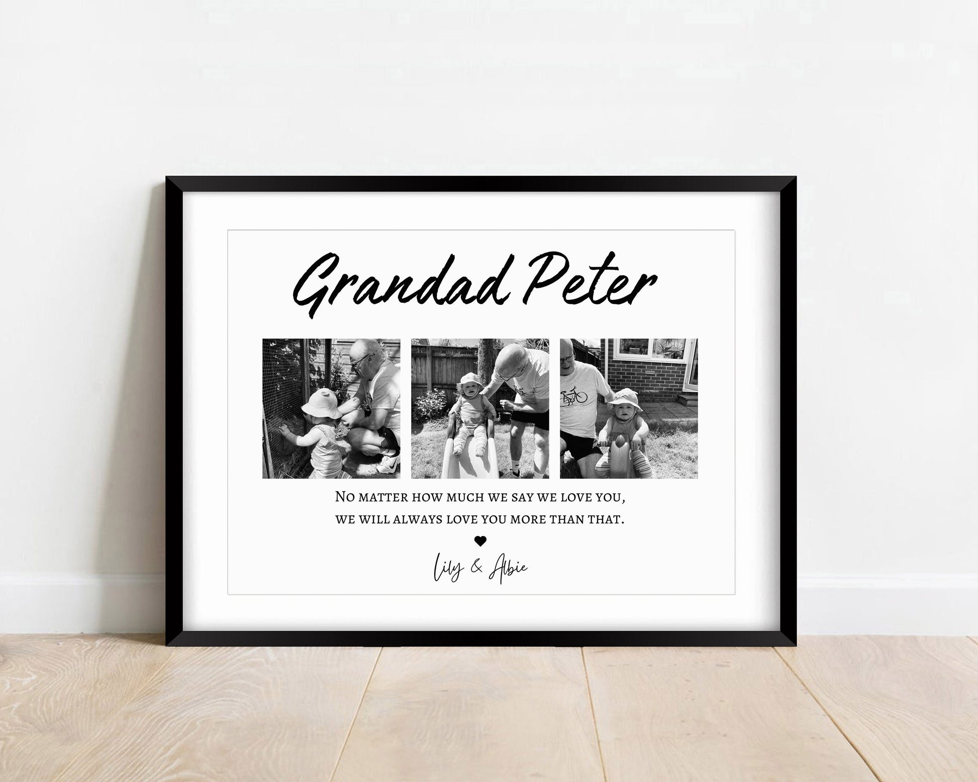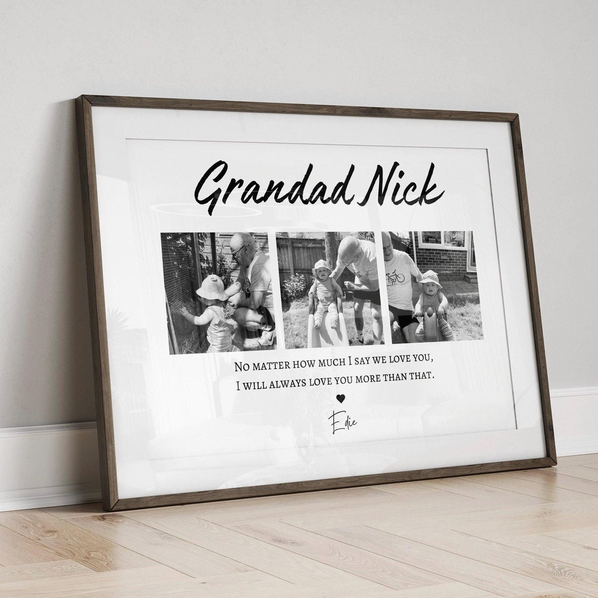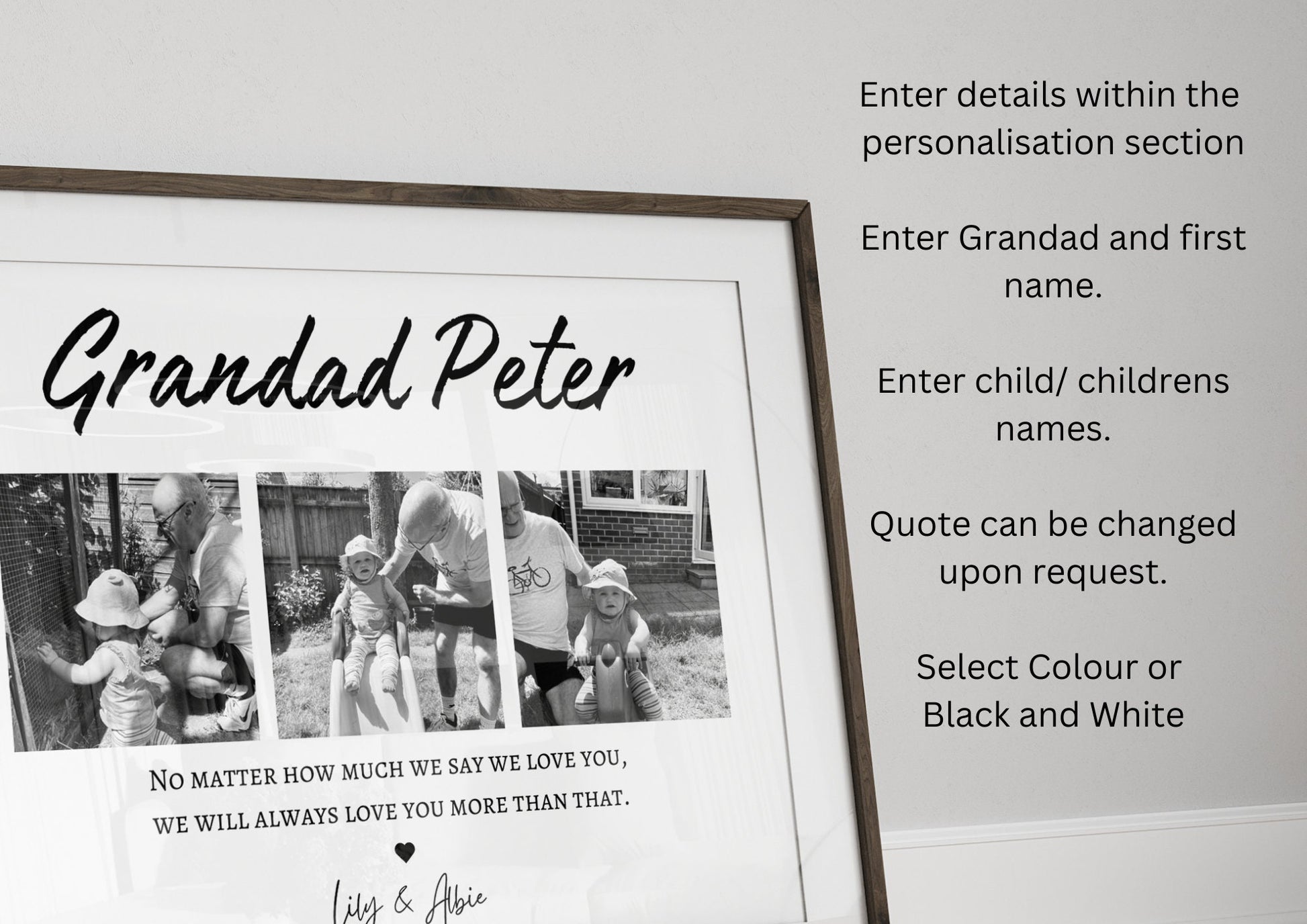 Treat an incredible Grandad with this sentimental and beautiful customised photo print. Fully personalised to order with photos that capture the wonderful relationship with their Grandpa, the children/s name and a quote that reads 'No matter how much I/ we say I/ we love you, I/we will always love you more than that.