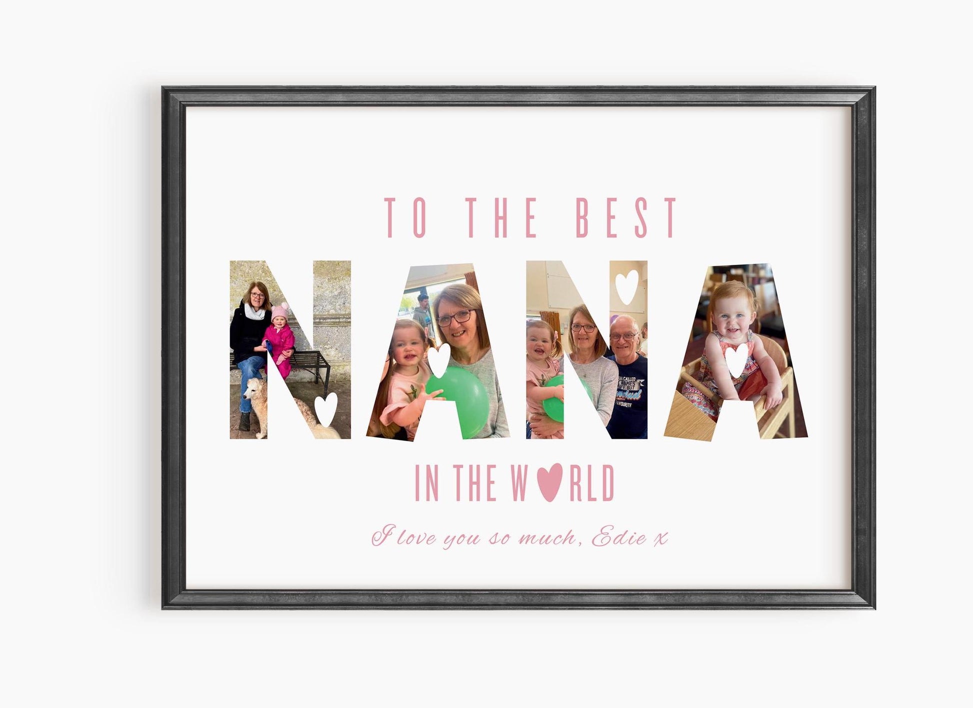 Personalised Nana Letter Photo Collage, Custom Nanny Birthday Gift Print