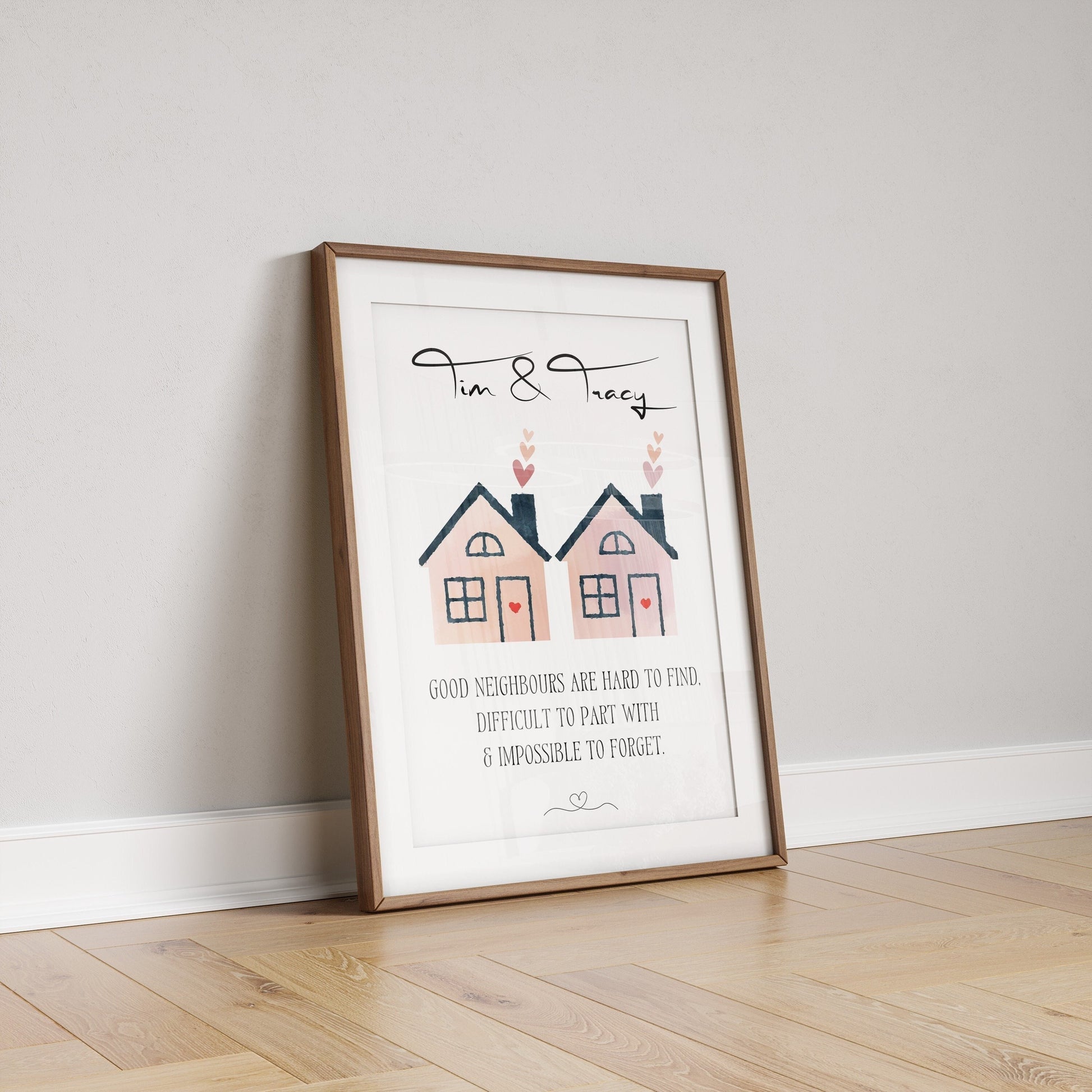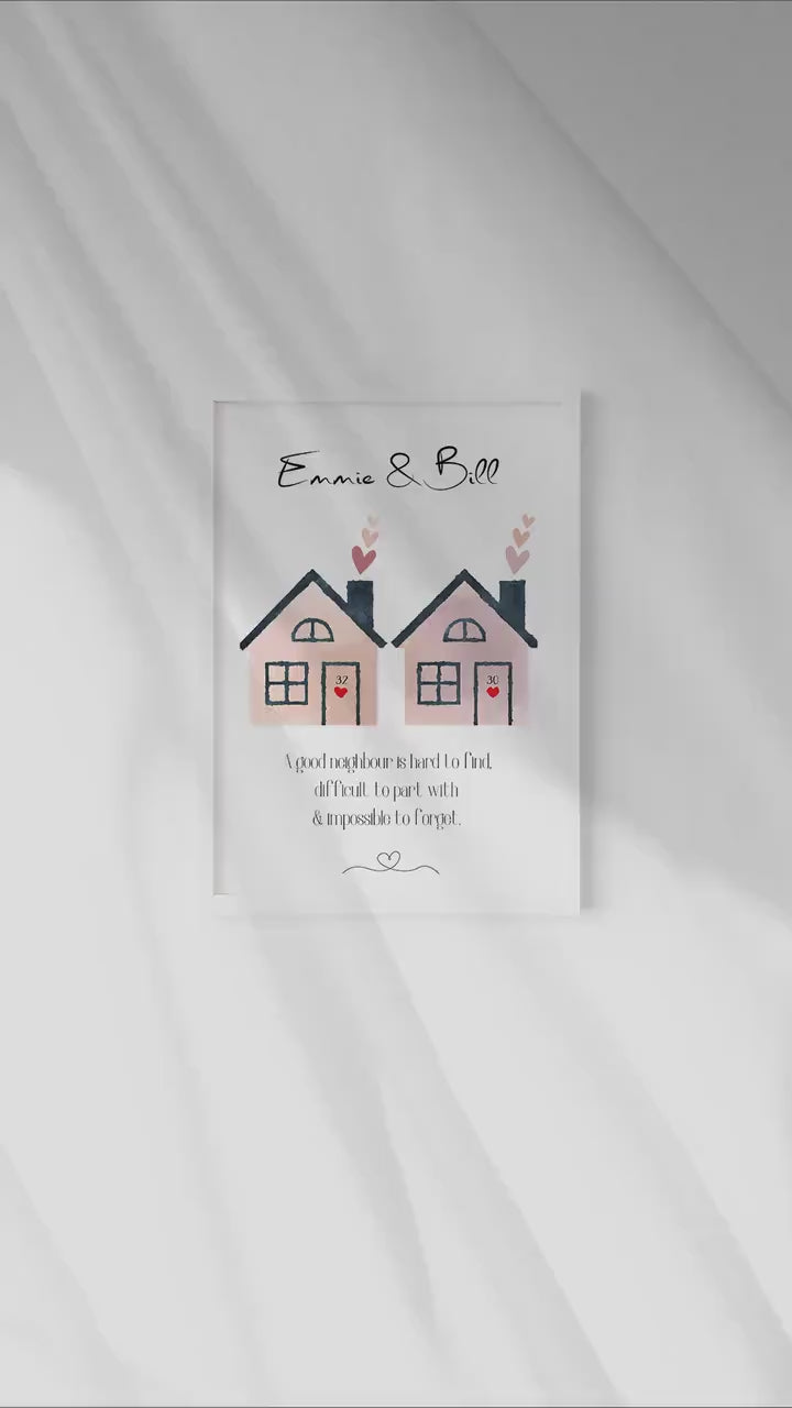 A special gift for some special neighbours. This personalised print is the perfect gift to capture how incredible your neighbours are. With 3 beautiful watercolour styles to chose from. Name personalisation and a warm quote this truly is a sentimental keepsake for your neighbours.