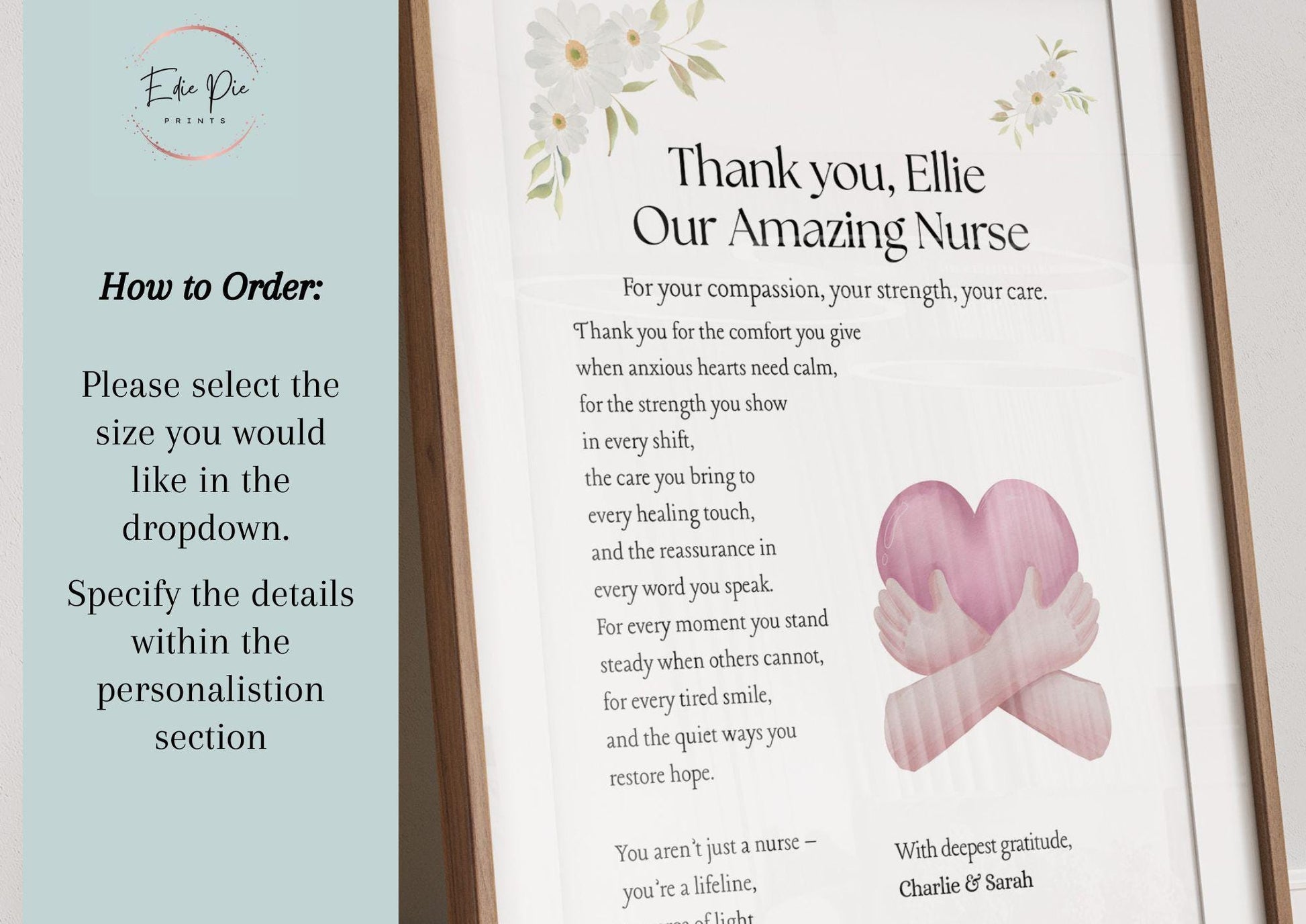 Personalised Nurse Appreciation Print: Custom Thank You Gift