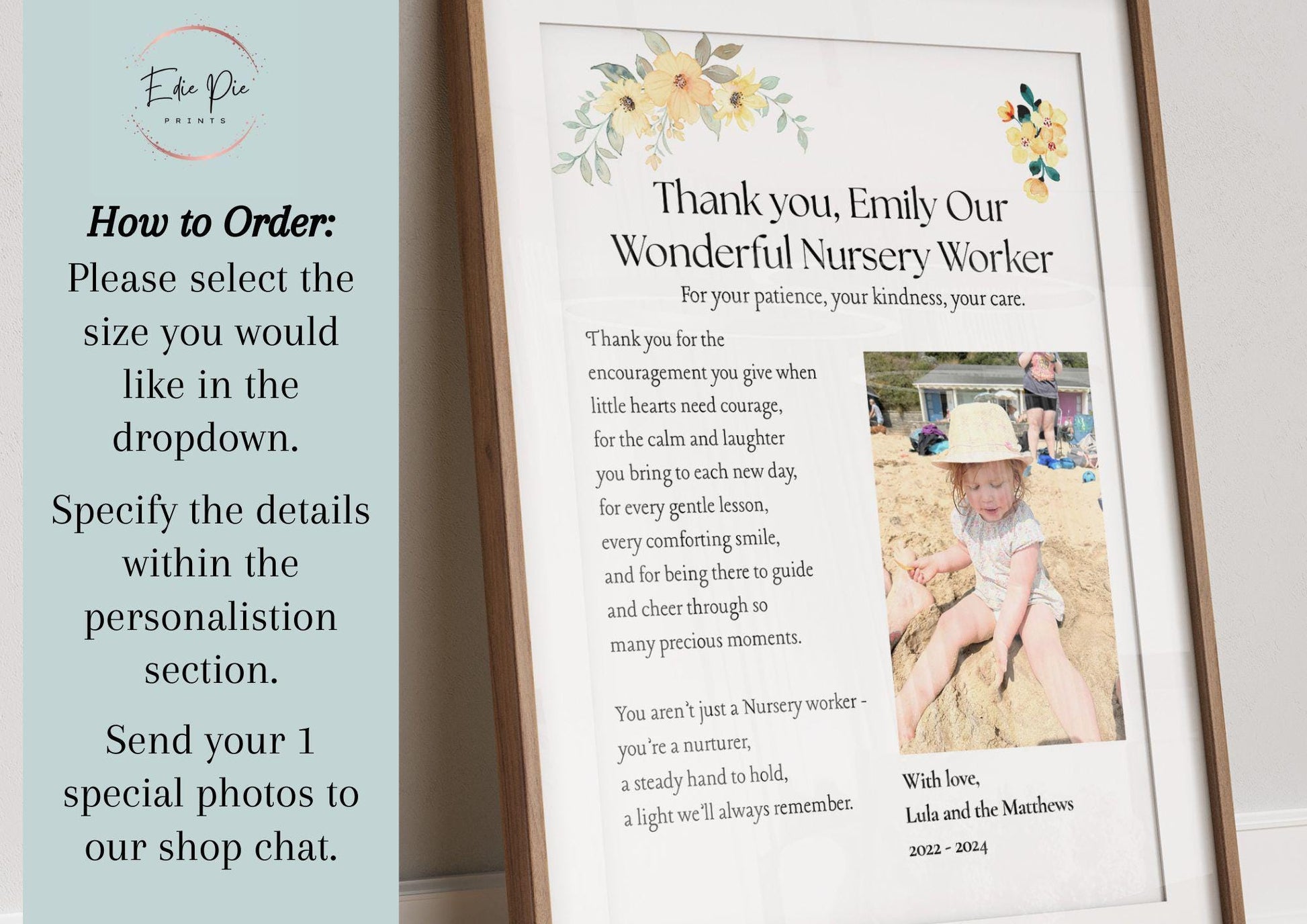 Personalised Nursery Worker Thank You Gift, Custom Nursery Teacher Appreciation Print, Nursery Keyworker Poem Photo Frame, End of Term Gift