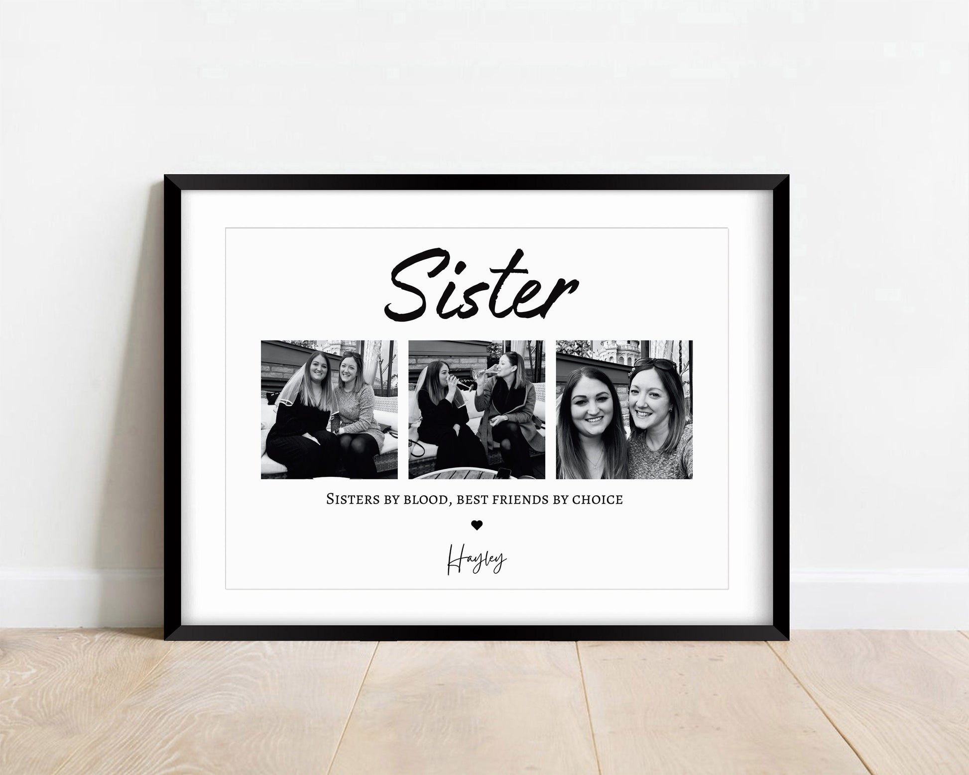 Treat an incredible Sister with this sentimental and beautiful customised photo print. Fully personalised to order with photos that capture the wonderful relationship you have with you sister. With a quote that reads 'Sisters by Blood, Best Friends by Choice.'