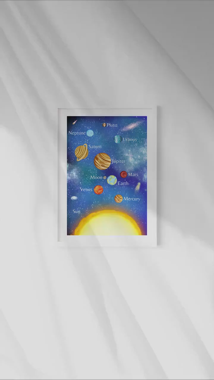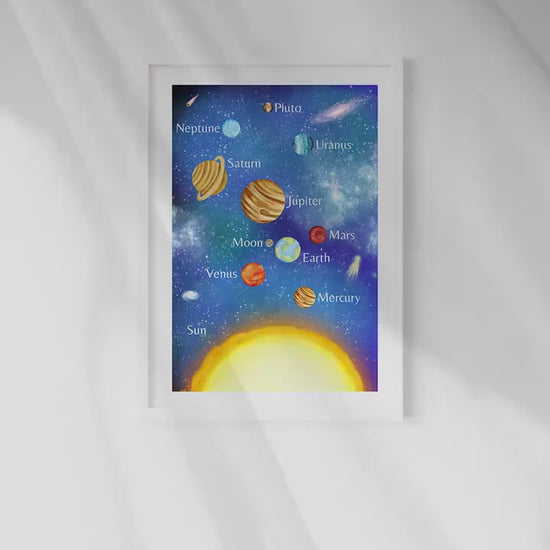This stunning and vibrant Space Print Set is a stunning finishing piece for any outer space themed room. Capturing the mystery and wonder of outer space including a scale print of our very own solar system. This listing is sold as a set of 3 and is fully personalised to order.