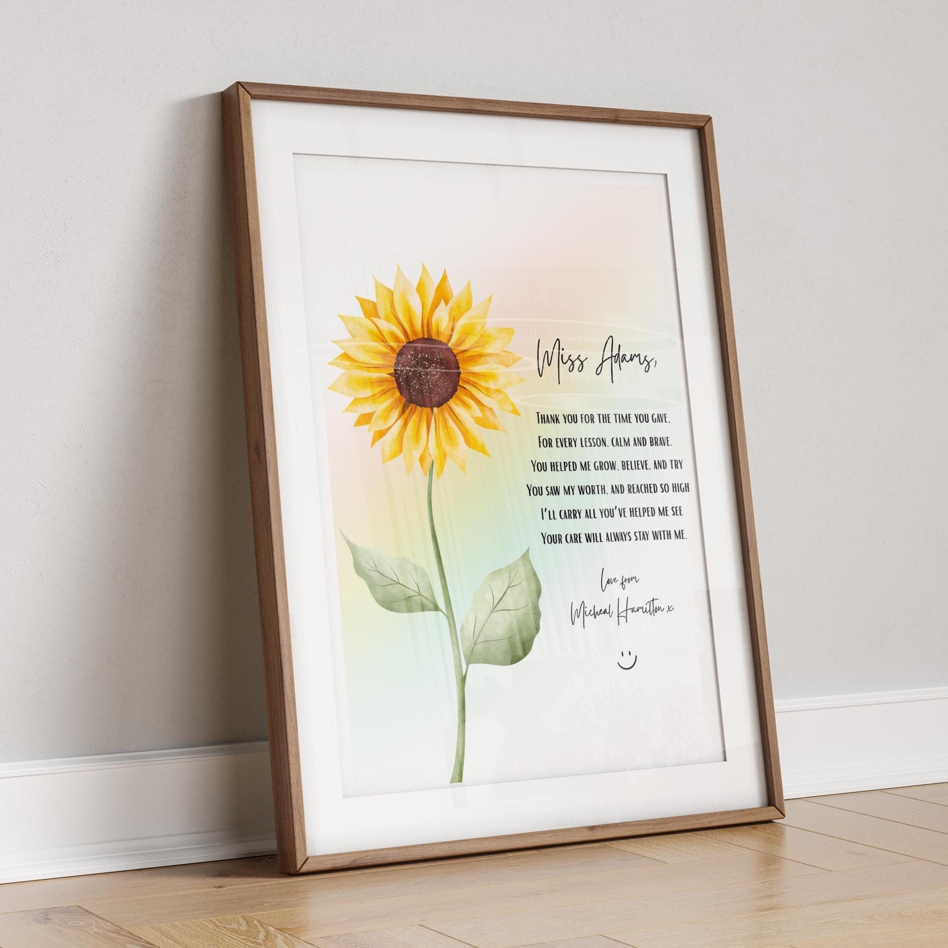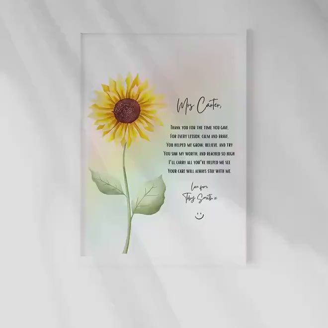 Personalised Teacher Gift, Sunflower & Rainbow Print, Nursery Keyworker Thank You, Custom End of Year Gift, Thank You Gift for Nursery Staff