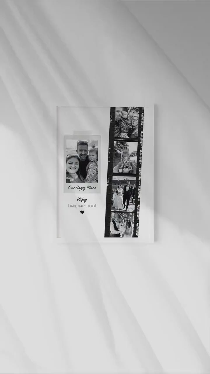 Treat your amazing Wife to this sentimental and beautiful customised photo print. Fully personalised to order with 5 photos that capture the amazing beauty of your marriage in lovely mono style, with a date or quote to be added to the main polaroid picture.