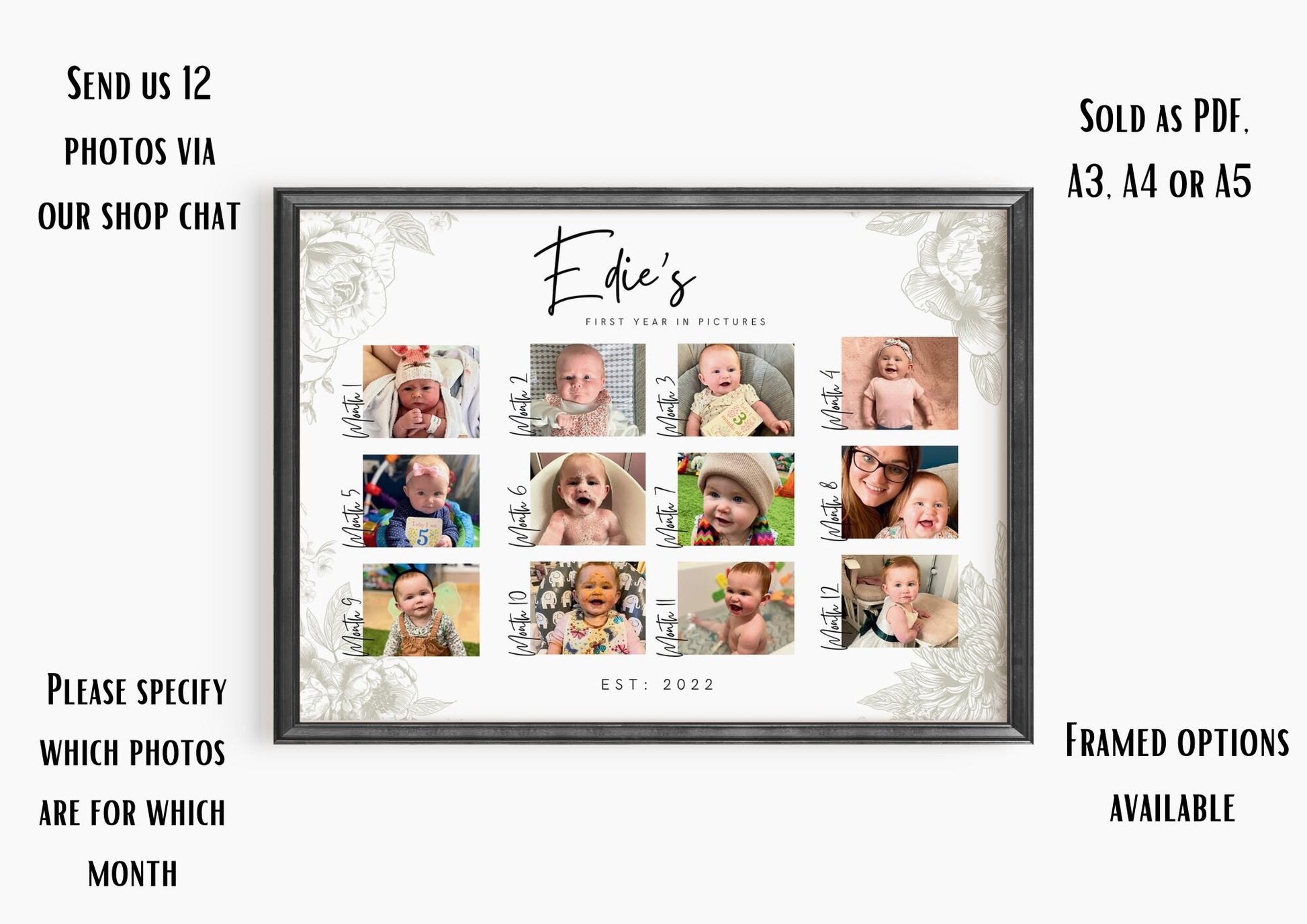 Personalized Baby's First Year Photo Collage Print - Milestone Keepsake