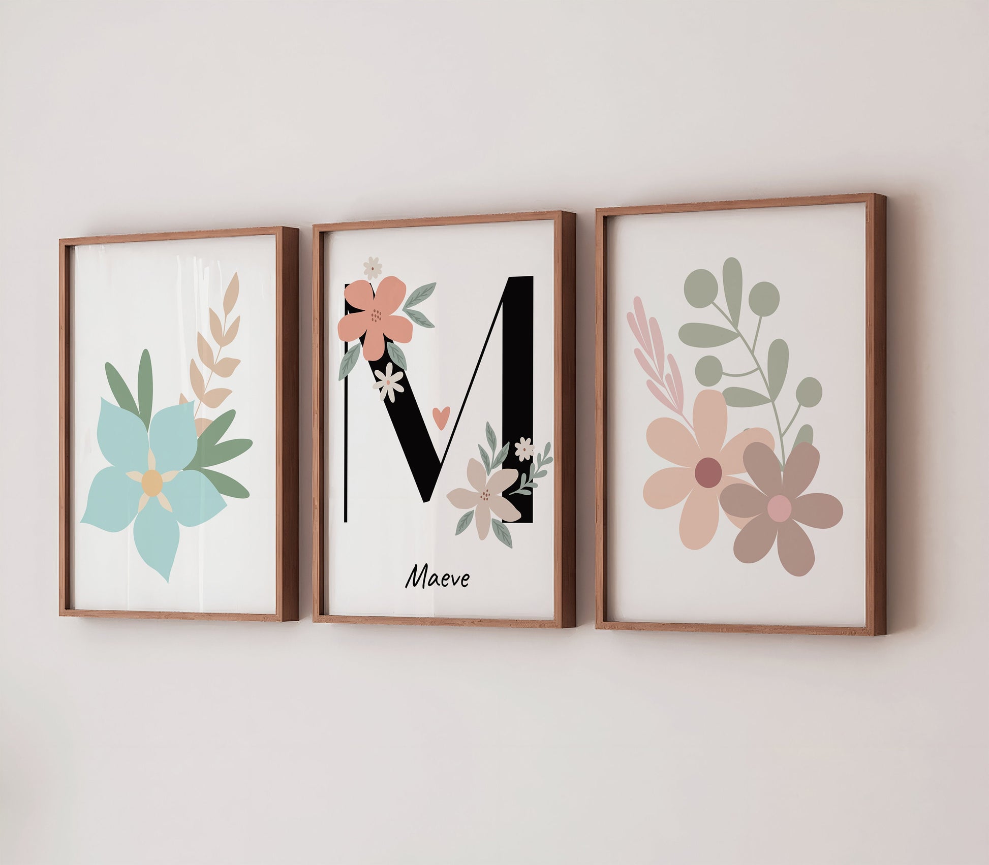 Personalized Floral Nursery Print Set: Boho Pastel Decor (PDF)