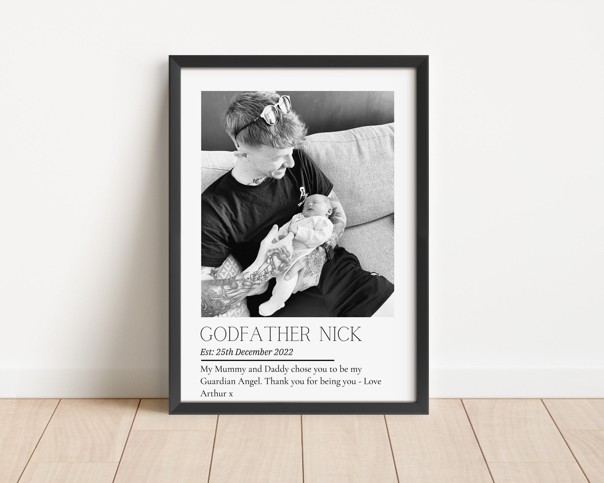 Treat an incredible Godfather with this sentimental and beautiful customised print. Fully personalised to order with a photo that captures their wonderful relationship, their name and year established date finished off with a quote that reads 'My Mummy and Daddy chose you to be my Guardian Angel, thank you for being you - from 'name''