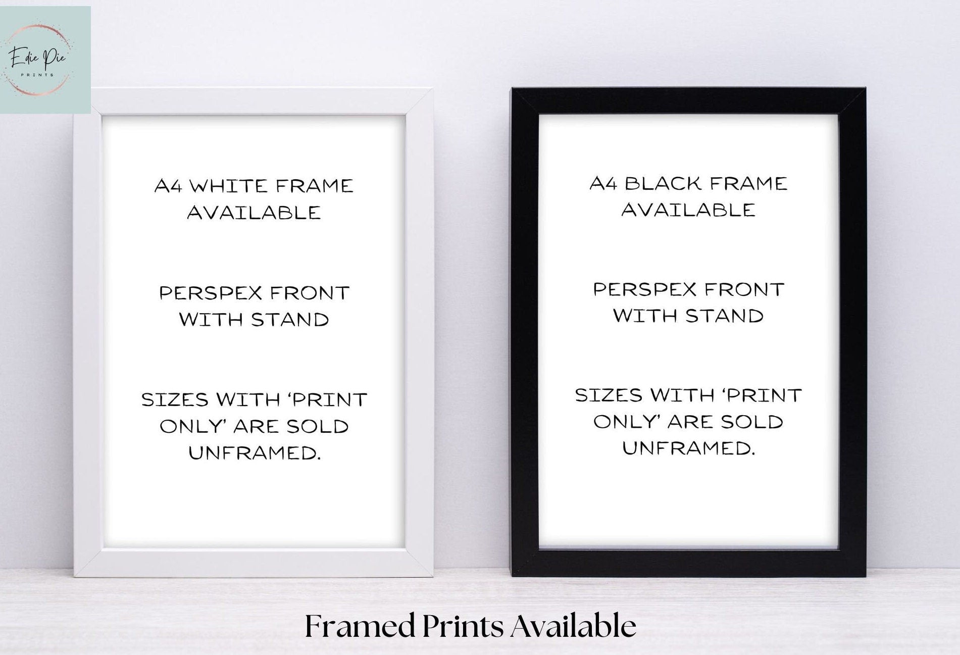 We are a home-based small printing business in Salisbury, UK. Our print business was inspired by our beautiful little girl Edie. All prints in our shop are designed by us and are created around home and wedding decor to accompany any style you choose. Our prints are sent frameless to give you the peace of mind that you can decide what style, colour, and design you would like in your living space or wedding.