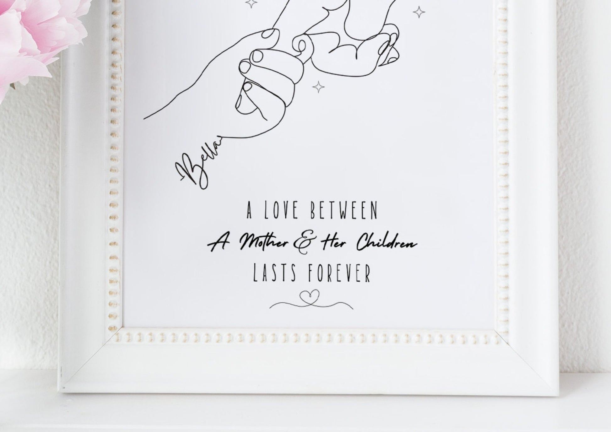Personalized Mum Hands Line Art Print: Mother Gift from Son