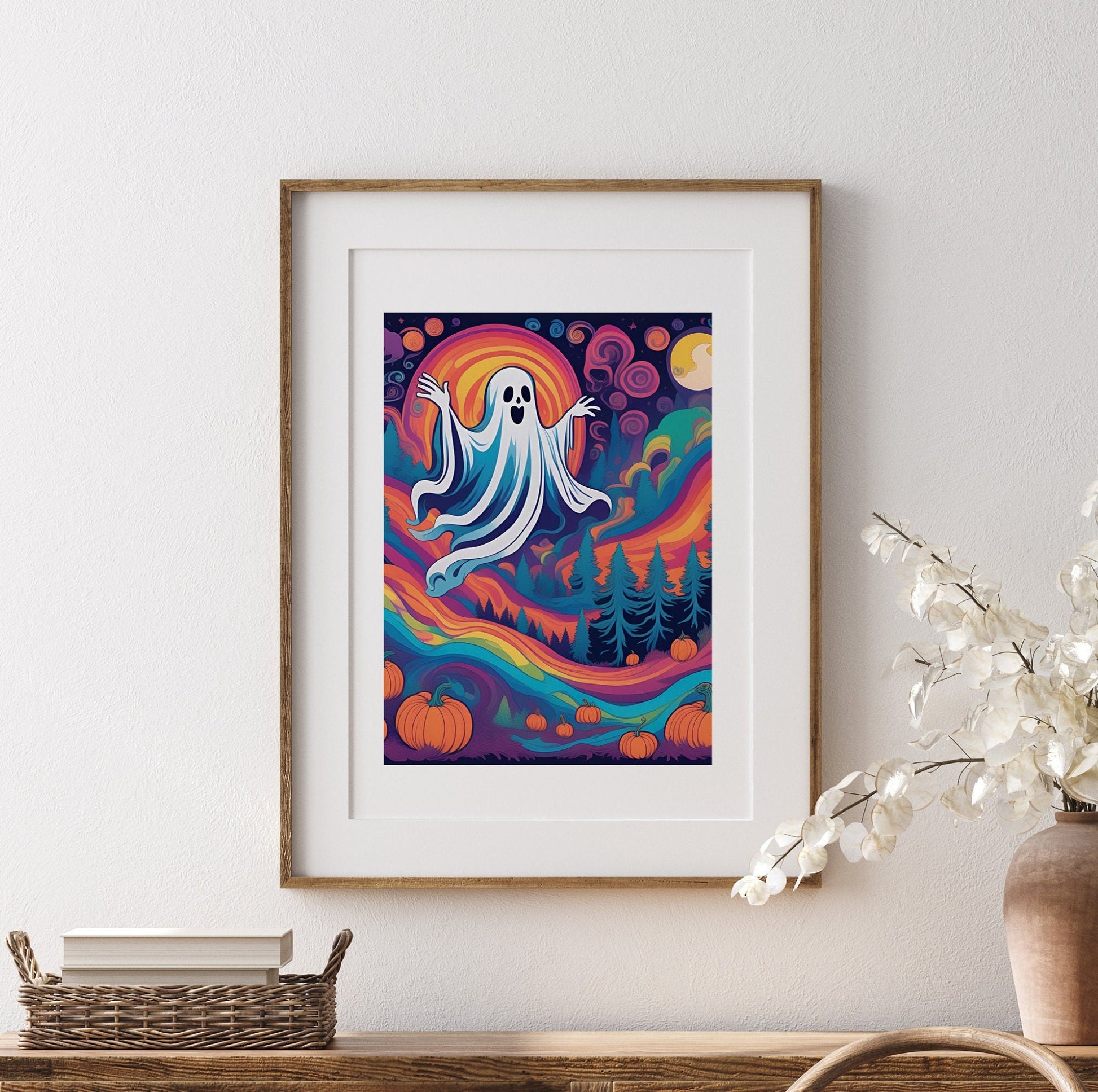 Psychedelic Ghost Print Set: Groovy Halloween Home Decor (Set of 3)